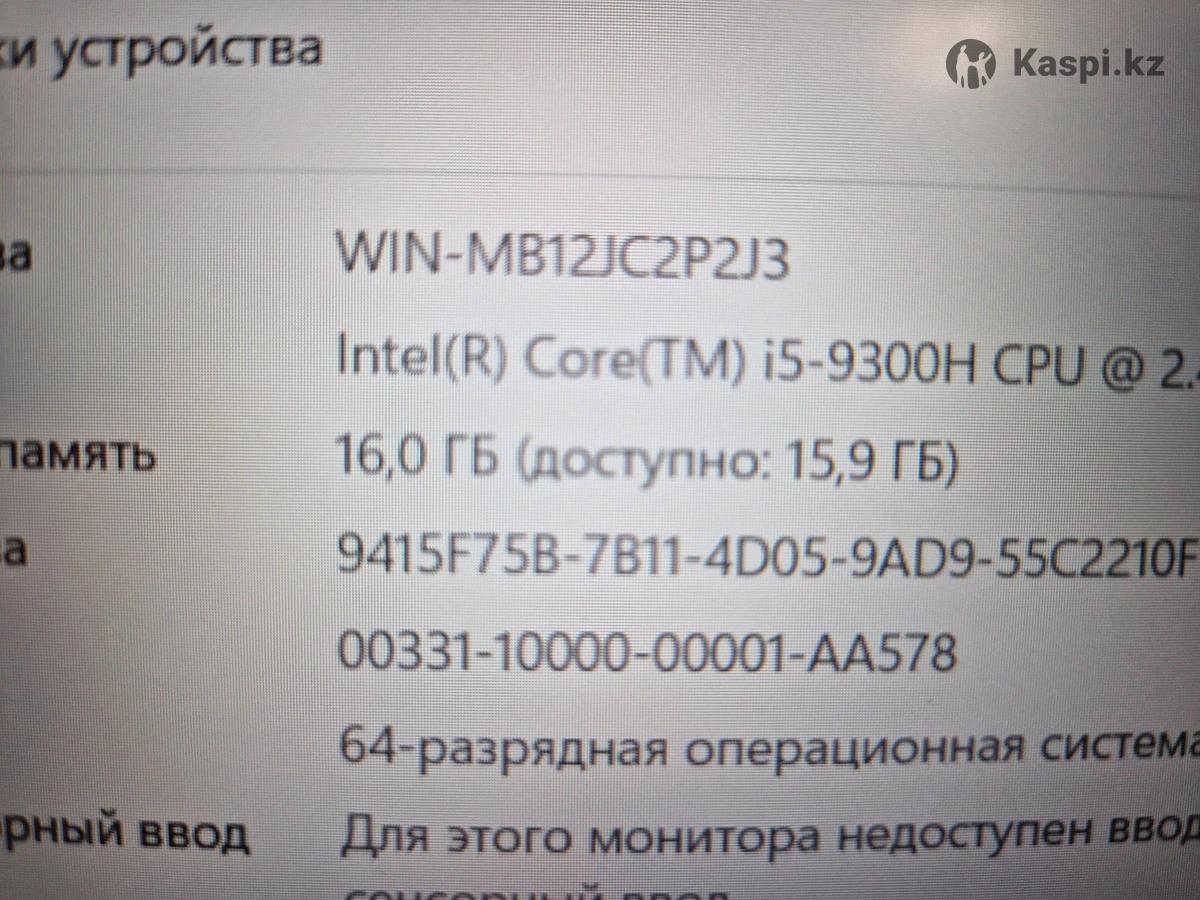 ASUS TUF FX505GT Есть каспи рассрочка +16% к стоимости товара Плюсы: + Работает шустро и программы загружает быстро за счет SSD + Тихая и холодная даже на max нагрузках + Клавиши не залипают и не скрипят + + СвежеУстановленный windows 11 64bit + Установлен Офис + Система не греется + Аккумулятор здоровье 8/10 батарею держит 3 часа как все игровые. + Камера микрофон динамики работают отлично все порты работают Дам от себя гарантию при необходимости могу написать расписку Характеристики CPU: Corei5 9300H ОЗУ : 16gb SSD: 500 HDD: 1000GB VGA: GTX 1650 4gb Дисплей 15.6 FHD IPS 144 герц Цена окончательная торга нет Адрес Жилой комплекс Аккент дом 53