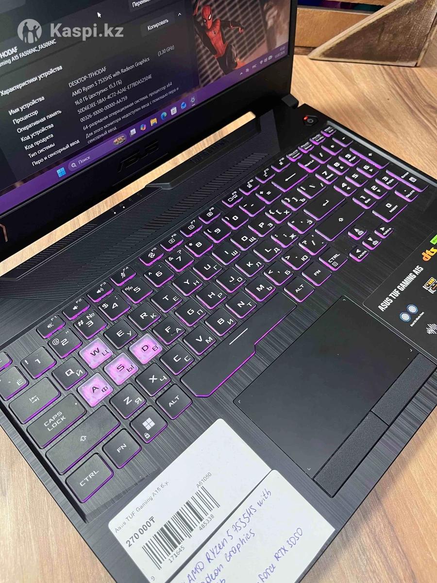 В наличии: Игровой ноутбук ASUS TUF Gaming A15 CPU: AMD Ryzen 5 7535HS with Radeon Graphics RAM: 16Gb SSD: 512Gb GPU: NVIDIA Ge force RTX 3050 Laptop GPU Гарантия: 1 Месяц Доступна доставка по городу Цена: 110.000 тг Торг неуместен. Inst: Комиссионный магазин Plankton Адрес: Желтоксан 1, вход со стороны набережной, деловой центр GreenVille