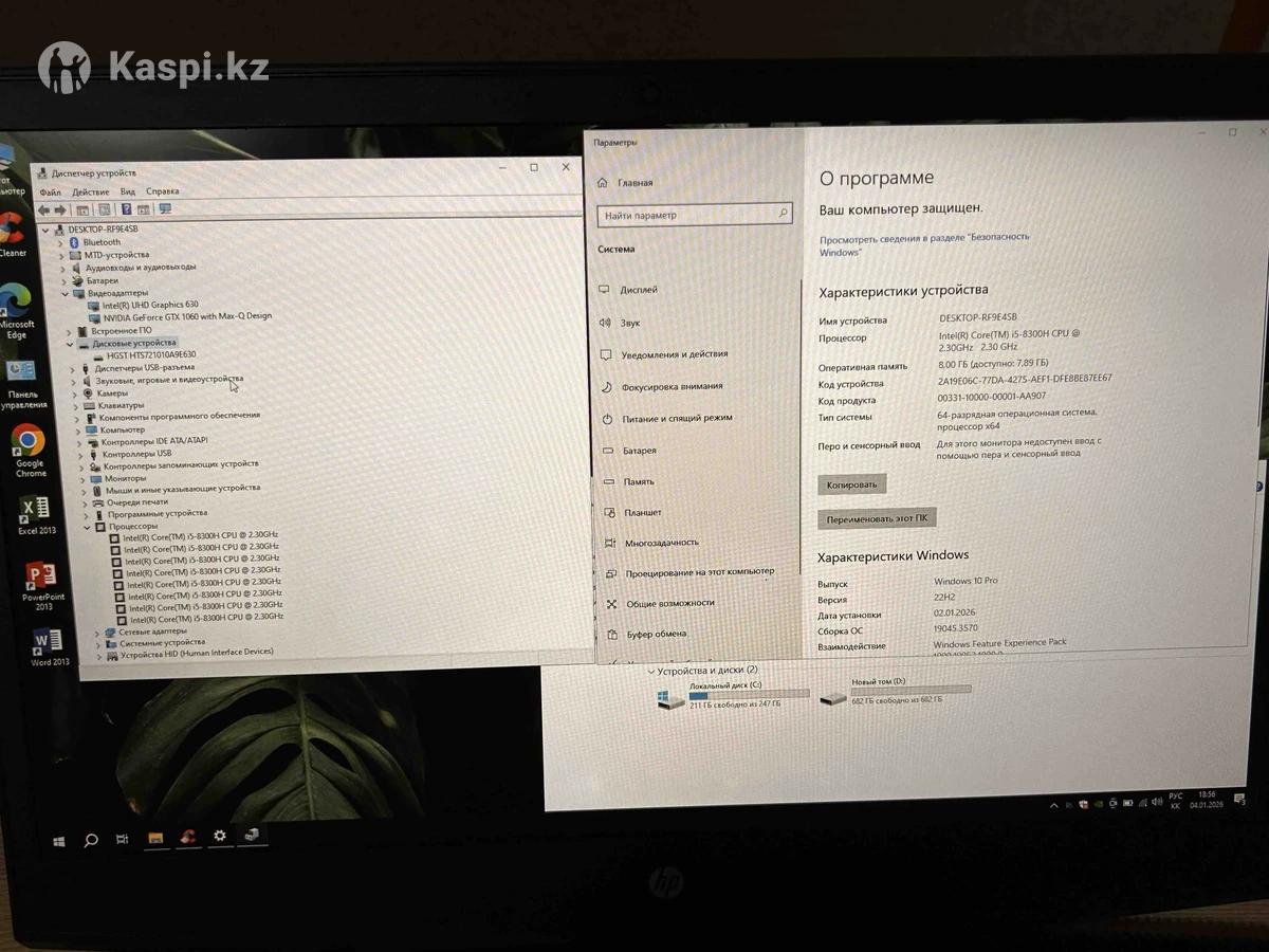 • Месяц гарантии. - Характеристики на фото - Процессор i5-8 поколение с разгоном до 4.00 герц. - ОЗУ - 8гб. - SSD 512gb. - Видеокарта GTX 1060 QMAX . - Экран IPs 15,5 дюймовый яркий FULL HD, Яркая подсветка клавиатуры. - АКБ заряд держит долго. Все в идеальном состоянии без минусов. Любые проверки перед покупкой. Внутри все чисто очищено смазано дорогой термопастой. Не шумит не греется, для комфортной игры и тяжелых 3D работы самое то. - Гарантия есть, цена окончательная, доставка бесплатная по всему КЗ. По поводу торга не беспокоить