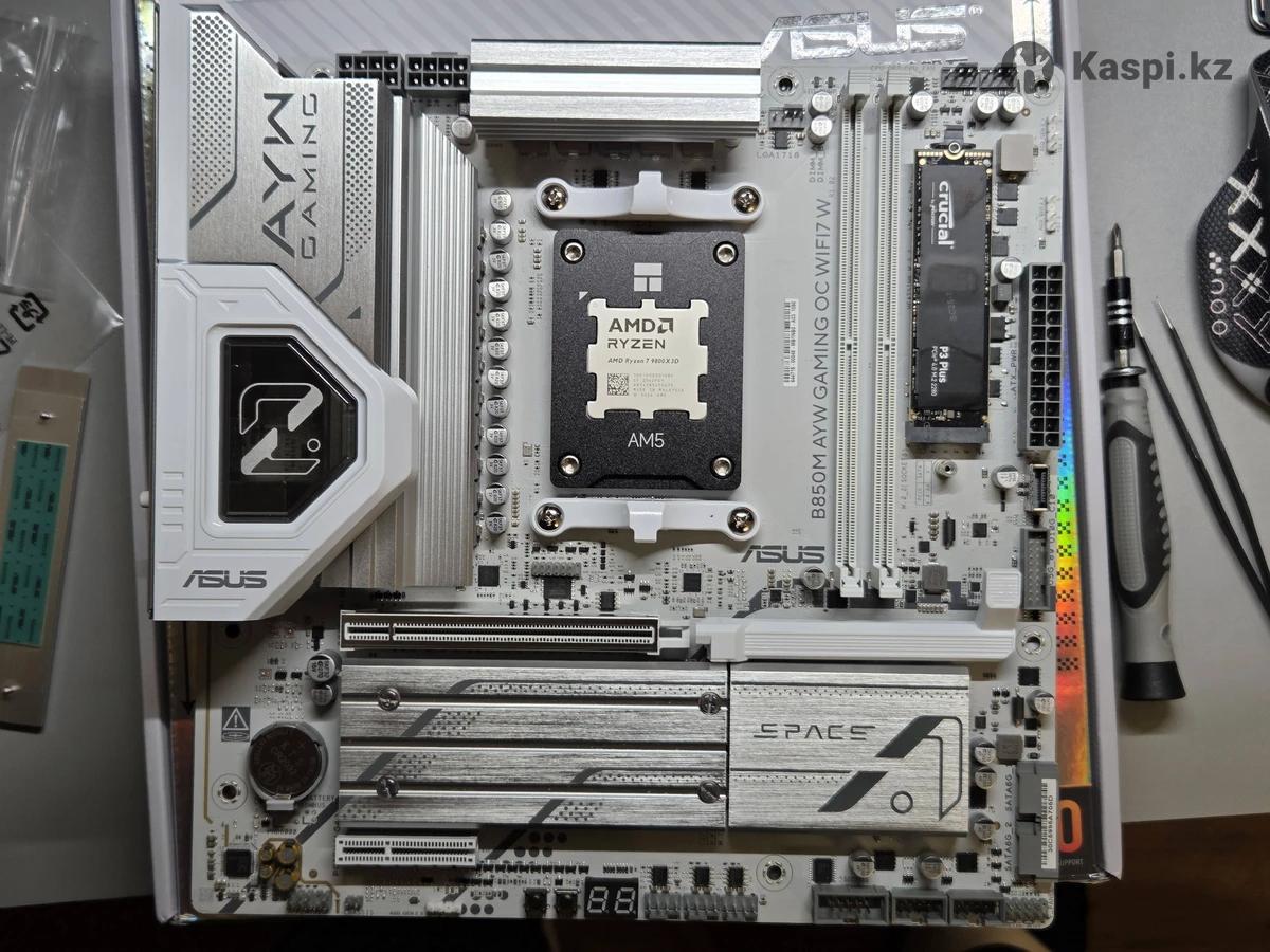 Премиум игровая сборка с новейшими компонентами 2025: Процессор — AMD Ryzen 7 9800X3D 8 ядер, 16 потоков с 3D V-Cache технологией последнего поколения. Абсолютный лидер для гейминга и творческих задач. Производительность выше конкурентов на 15-20%. Система охлаждения — Thermalright Peerless Assassin 120 Mini Премиум воздушное охлаждение с отличным соотношением производительности и компактности. Материнская плата — ASUS AYW B850M Gaming WiFi7 Современная плата с поддержкой WiFi 7, мощная система питания для стабильной работы. Полная готовность к будущим апгрейдам на AM5. Оперативная память — Corsair Dominator Titanium White 48GB (2×24GB) 6000 МГц CL30 Премиум модули с высокой частотой, достаточно памяти для стриминга и многозадачности одновременно. Накопитель — Crucial P3 Plus 4TB Быстрый NVMe с большим объемом для всей библиотеки игр. Молниеносные загрузки. Видеокарта — NVIDIA RTX 5070 Founders Edition Новейшее поколение видеокарт. Уверенно тянет 4K на максимальных настройках с трассировкой лучей. Блок питания — Thermalright TP850FX Platinum 850W модульный, 80+ Platinum. Надежность на долгие годы. Охлаждение — Thermalright UB240WR, B9W Профессиональная система управления воздухом. Корпус — Mechanic Master C26 (15L) Компактный, качественный корпус с хорошей вентиляцией. Все компоненты новые, оригинальные, на гарантии производителя 9800x3d - 265 Thermalright peerless assassin 120 mini - 20 Thermalright tl-ub24 - 23 Thermalright tl-b9 - 10x2 Thermalright tp850fx - 135 Asus b850m AYW gaming OC wifi7 - 150 Corsair Dominator 24x2 6000 cl30 - 400 4tb Crucial P3 plus - 268 Mechanic Master c26 - 65 Nvidia RTX 5070 - 400 Собрать самому выйдет 1.736к Отправка по РК Цена: 1 500 000 KZT (экономия 236к!!) Торга нет Рассрочка есть Каспи 0012 будет на 22 процента больше Халык 0024 будет на 33 процента больше чем наличкой Пишите по объявлению или в — подскажу по производительности и характеристикам.