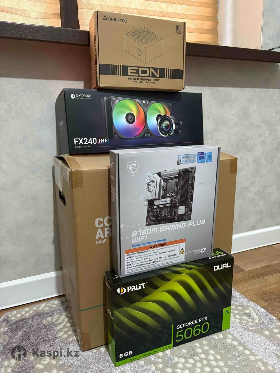 Игровой ПК в идеальном состоянии. Покупался осенью, пользовался редко. Продаю в связи с переездом. Коробки имеется от всех комплектующих Материнская плата MSI PRO B760M-A WIFI Процессор Intel Core i5-14600KF ОЗУ 32 Гб DDR5 6000MHz SSD 1 Тб M.2 NVMe Kingston Видеокарта Palit RTX 5060 8 Гб Водяное охлаждение ID Cooling FX240 Блок питания Chieftec 700W Корпус Deepcool CC360 ARGB Подходит для современных игр и работы. Полностью исправен, без проблем