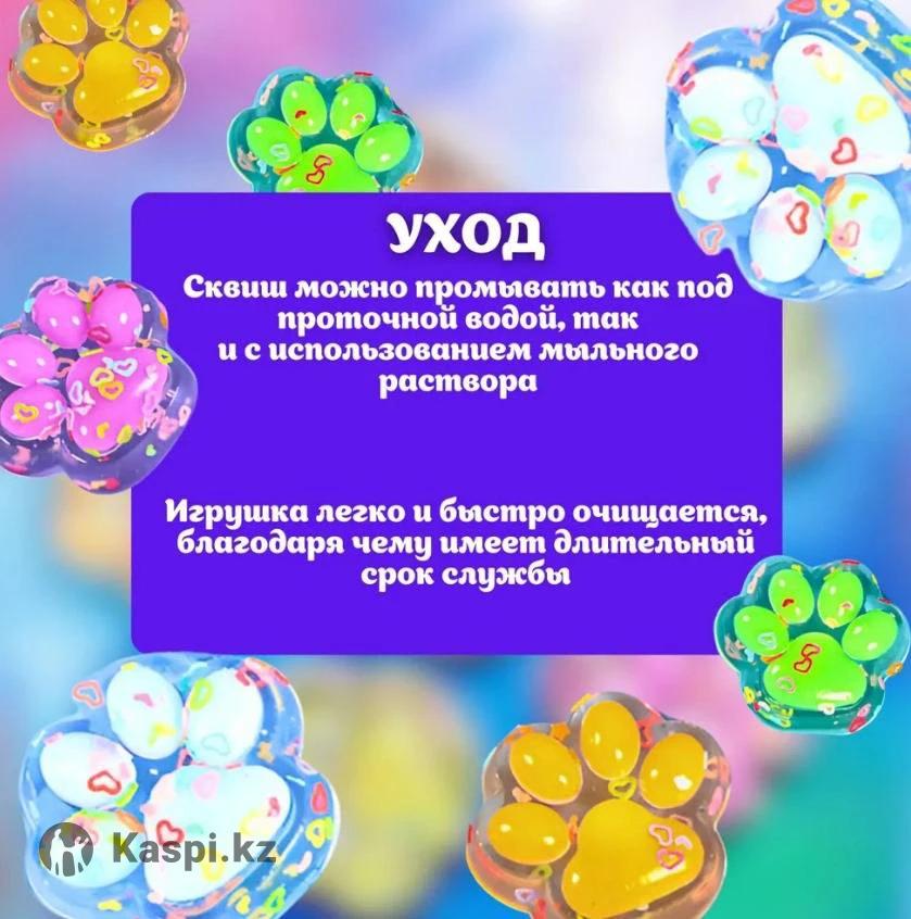 Светящийся антистресс СКВИШ Антистрессы «Таба лапка» – это не просто игрушка, а настоящий тренд, который помогает людям справляться с напряжением и улучшать настроение. Ощутите магию прикосновений с Тягучей Тобой Лапкой, которая вам подарит невероятное тактильное удовольствие. Мягкий и эластичный материал приятно ложиться в руку, обеспечивая моментальное расслабление и отвлекая от повседневных забот. Отличный подарок для друзей и близких, добавляя яркости и позитива в повседневную жизнь. Особенности: - эффективный внешний вид; - создает волшебный мерцающий эффект при каждом нажатии; - позволяющей растягивать, сжимать и мять лапку, наблюдая за плавными движениями и переливами блесток внутри; - компактный размер, позволяет носить ее с собой, будь то работа, учеба, или прогулка. Доставка по городу 2 000 тг.