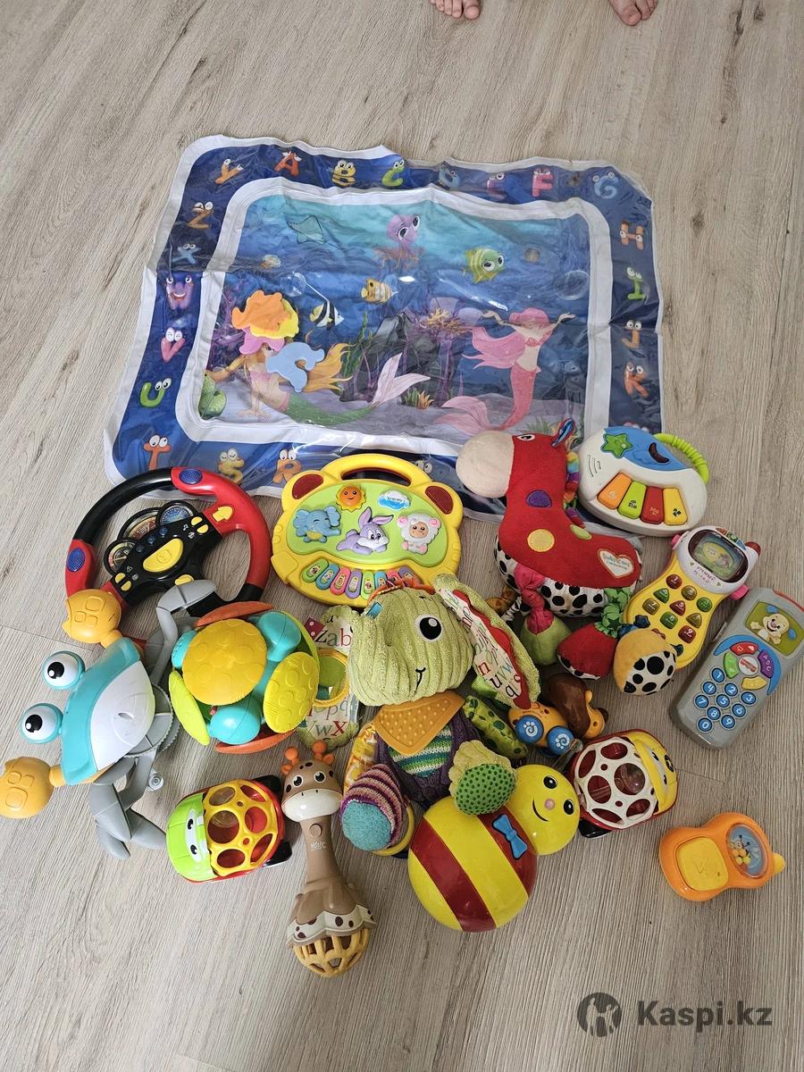 Продам в одни руки ,все что на фото. Слоник тактильный ( шуршит, есть грызунок), лошадка музыкальная ( заводная), музыкальные , машинки погремушки , руль музыкальный, мяч вибрирующий , коврик развивающий для ваны, крабик музыкальный бегающий и т.д Забрать можно с. Еркин или Ваз или Айнабулак ( заранее обговорить)