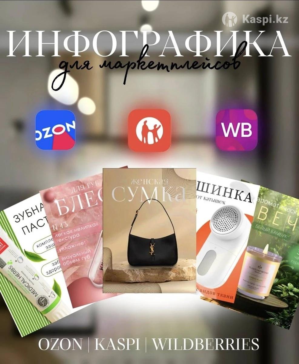 Здравствуйте! Меня зовут Арина, и я создаю стильные, информативные инфографики для маркетплейсов (Ozon, Wildberries, Kaspi). •Прислушиваюсь к вашим пожеланиям и дорабатываю до идеального результата Для выполнения заказа от Вас потребуется: 1. Фото товара. 2. Описание товара. 3. Пожелания по оформлению. Предоплата 50% ............ Стоимость от 2000тг Каждому проекту уделяю максимум внимания, чтобы ваша карточка товара выделялась среди конкурентов. Напишите мне – обсудим вашу задачу и создадим инфографику идеальную для вас!