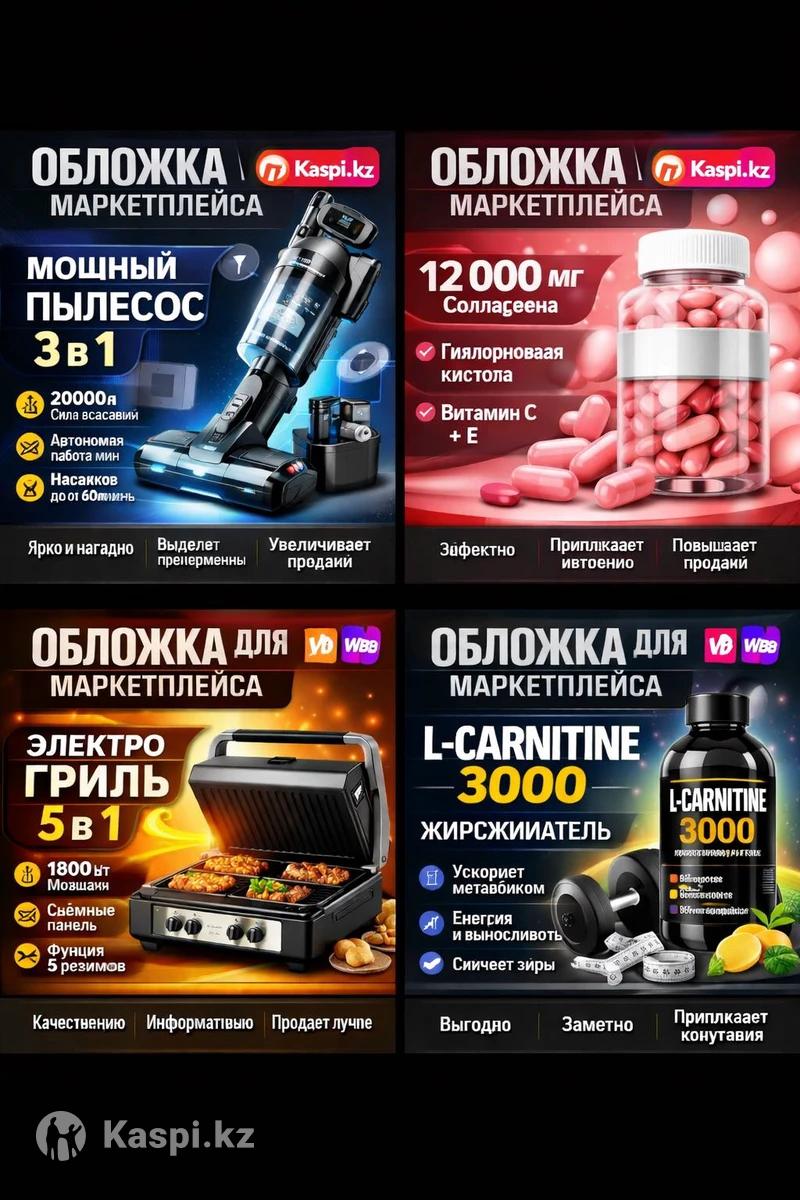 Инфографика и обложки для Kaspi / WB / Ozon