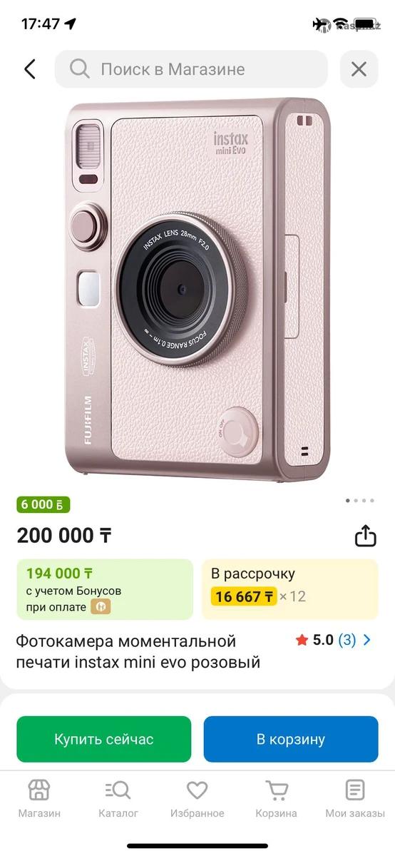 Instax Mini Evo 💗 Розовый цвет, лимитированная коллекция — выглядит очень стильно и нежно. Фотоаппарат почти новый: пользовалась всего один месяц, состояние идеальное, без нюансов. Есть подарочная коробка, отлично подойдёт, если берёте на подарок. 🎁 В подарок: •чехол •карта памяти (кстати, именно эту карту я искала целую неделю, потому что не каждая подходит) Главный плюс Mini Evo перед обычными Instax: ты можешь сделать сколько угодно кадров, посмотреть их на экране и распечатать именно ту фотографию, которая понравилась, а не тратить плёнку впустую. Это очень удобно и экономно. Возможности: •печать фото прямо с фотоаппарата •можно перекидывать фото с телефона и печатать их •много фильтров и настроек •фотографии получаются очень вайбовые, атмосферные 💘 Это идеальный подарок: •как для себя •так и на 14 февраля для своей половинки (очень романтично печатать моменты сразу 🫶) (На каспи такой продают за 200 тыс)