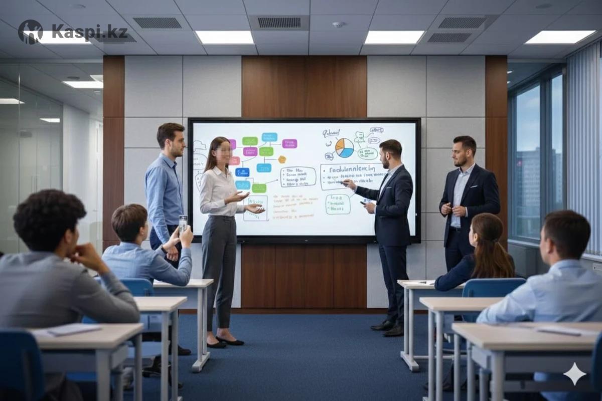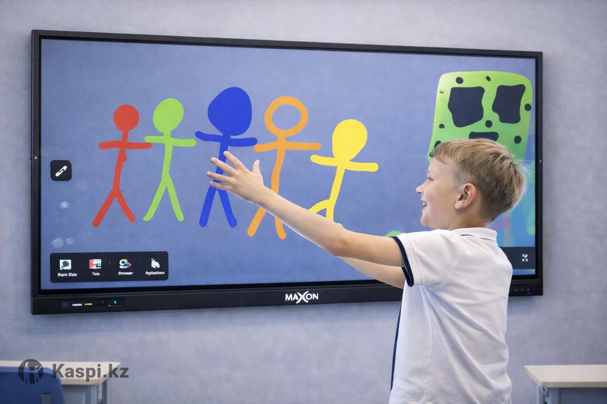 Профессиональная интерактивная доска для образовательных учреждений, корпоративных офисов и конференц-залов. Современный сенсорный экран с высокой производительностью и защищенным стеклом. Ключевые характеристики: • Экран: 65 дюймов, Ultra HD LED (прямой тип). • Разрешение: 4K (3840 times 2160), 60Hz. • Память: 8 ГБ RAM / 128 ГБ ROM (максимальная скорость работы). • Защита: Антибликовое стекло повышенной твердости (7 по шкале Мооса — устойчиво к царапинам). Технические преимущества: • Видимость: Яркость 400 cd/m² и контрастность 10 000:1 (четкое изображение в освещенных помещениях). • Угол обзора: 178° (изображение не искажается под любым углом). • Цветопередача: 1.07 млрд цветов (насыщенная и реалистичная картинка). • Надежность: Срок службы панели — 50 000 часов. Работает плавно, без задержек. Состояние: Отличное, полностью готова к эксплуатации.