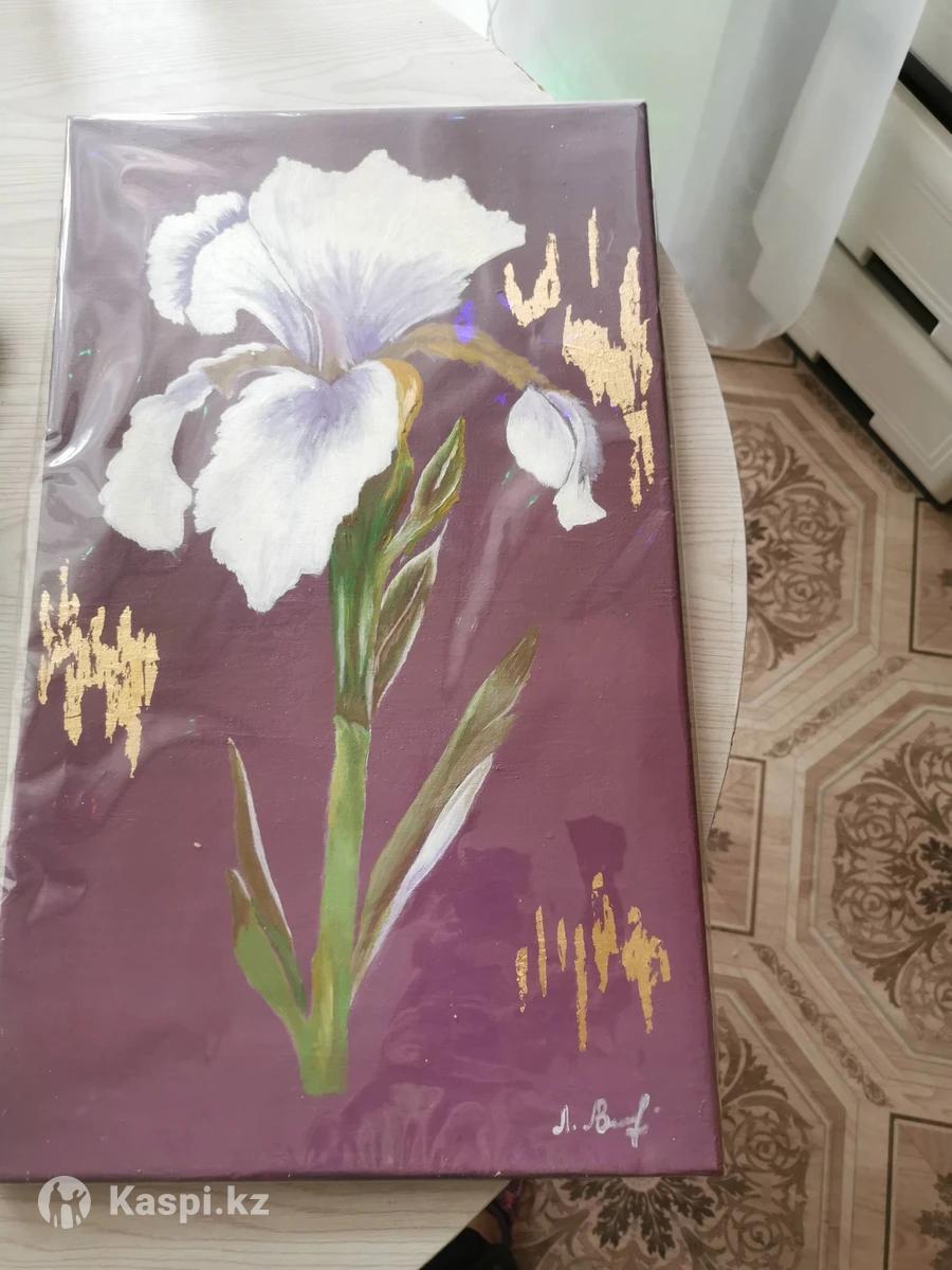 Интерьерная картина Ирис, размер 3050. Картина написана на холсте, масло, поталь. Ирис цветок достатка и богатства, такая картина подойдет для любого интерьера.