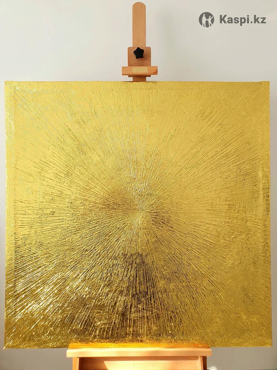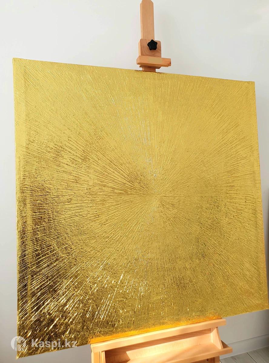 Современная Абстрактные Интерерьный картина "Лучи" техника текстурная паста золотой поталь размер 100×100 доставка есть