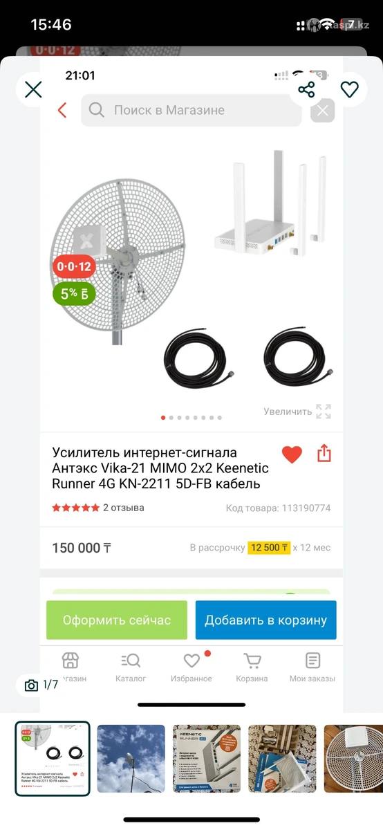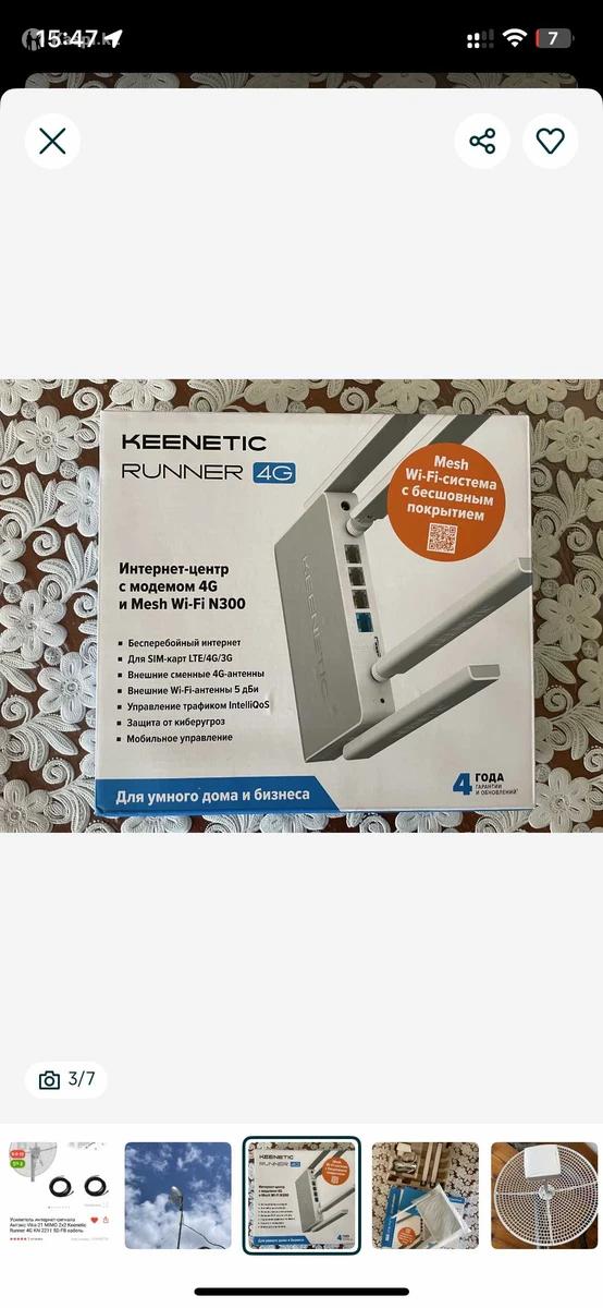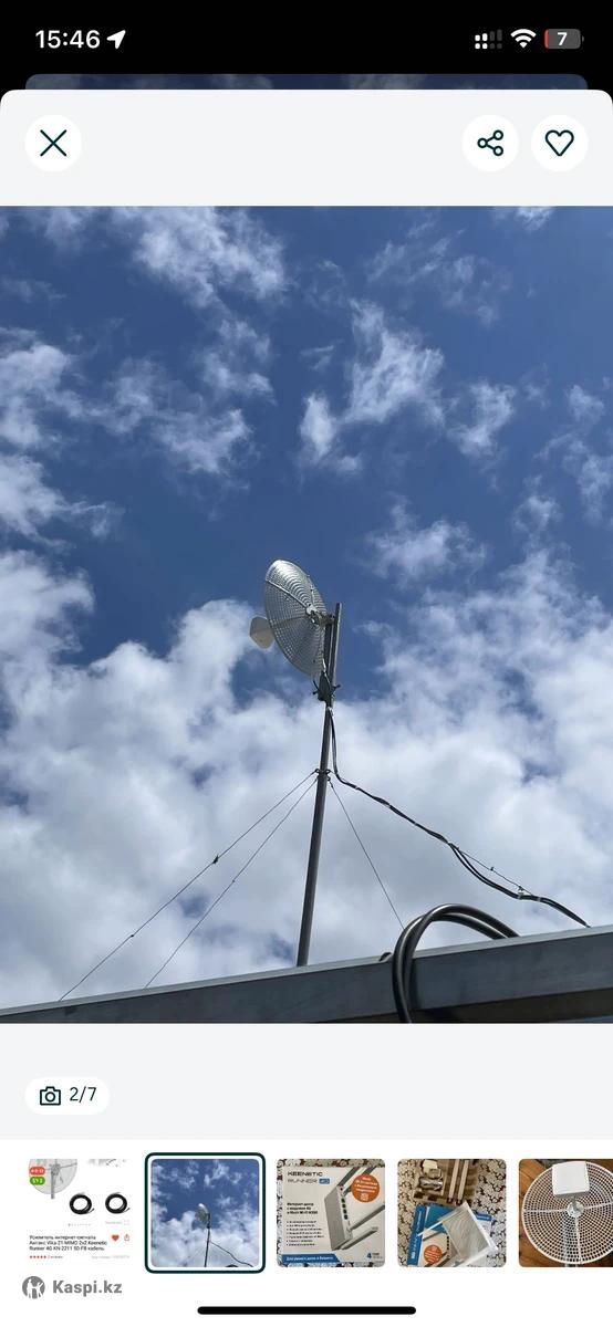 Хотите стабильный интернет даже вдали от города? Продаю мощную антенну, которая ловит сигнал от базовой станции на расстоянии до 30 км при прямой видимости. - Работает от любой SIM-карты любого оператора - Подходит для дачи, загородного дома, сельской местности - Полный комплект, готовый к установке В комплекте: • Антенна Vika 21 • 2 кабеля по 10 м 5D-FB • Роутер Keenetic Runner 4G • Мачта/крепление
