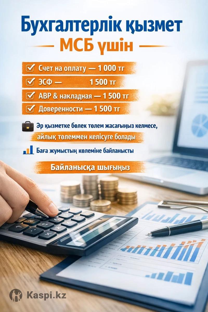 Бухгалтерлік қызмет ✔ Счет на оплату — 1 000 тг ✔ ЭСФ — 1 500 тг ✔ АВР & накладная — 1 500 тг ✔ Доверенности — 1 500 тг 💼 Әр қызметке бөлек төлем жасағыңыз келмесе, айлық төлеммен келісуге болады 📊 Баға жұмыстың көлеміне байланысты 📞 Байланысқа шығыңыз