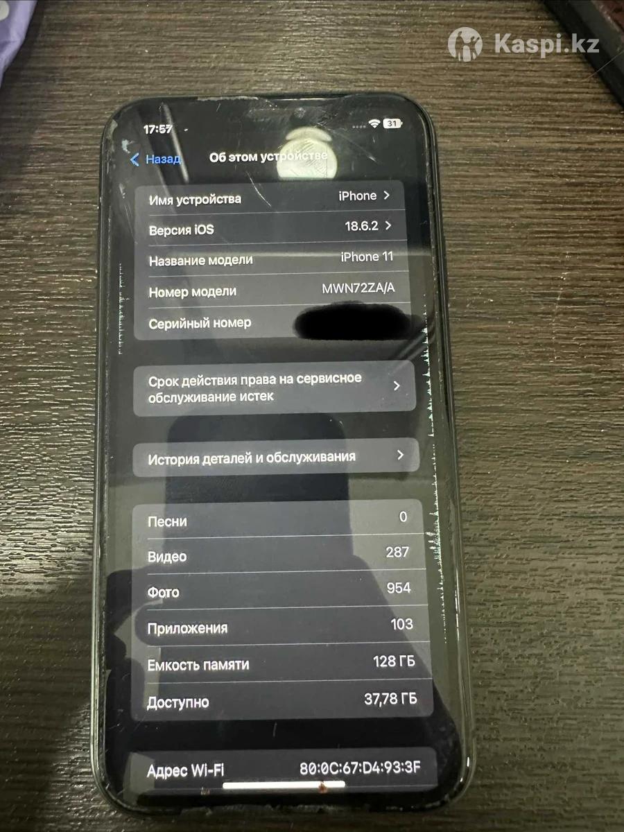 iPhone 11, 128Gb все работает и тру тон и фейс айди, 2 Симки, Дисплей есть царапины и дефекты но рабочий не был в ремонте,АКБ 63%.