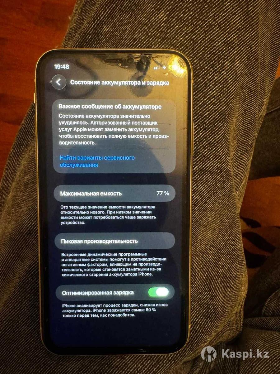 iPhone 11 , 128 gb, Белый , в хорошем состоянии документы имеется зарядка тоже . Весь комплект , 77 % процентов. Цена : 95.000 тг . Писать на