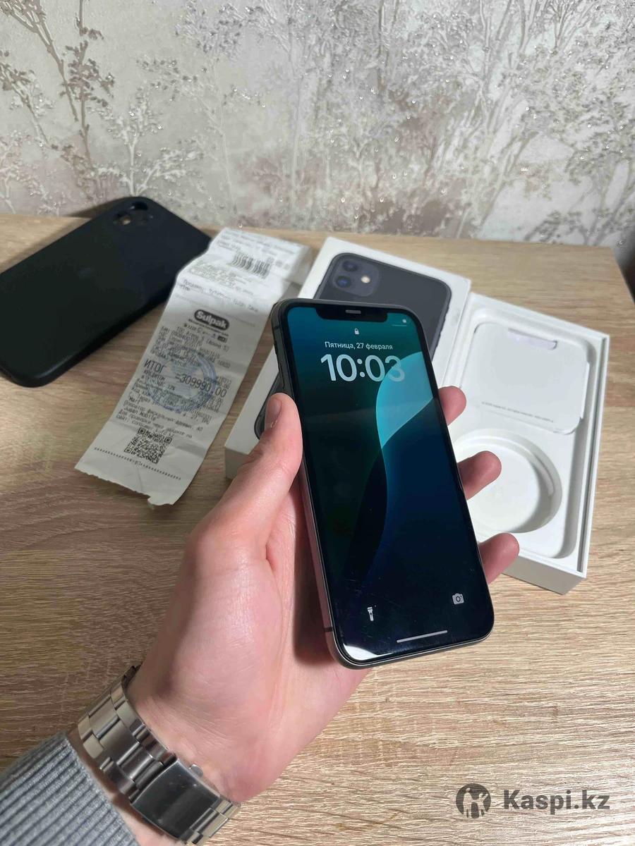 Продам айфон 11 128GB BLACK телефон в хорошем состоянии фейс трутон все работает телефон не вскрывался коробка доки все есть ,также имеется чек • покупки 1 владелец емкость 78% в оригинале цена 75 тысяч тенге Звонить по номеру +