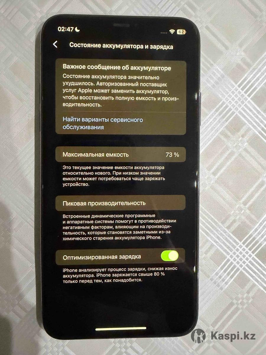 Продам свой iPhone 11 Pro Max на 256 ГБ. Телефон работает отлично, не ремонтировался, Face ID и все функции в порядке. Батарея — 73%, можно заменить при желании (на работу не влияет). Экран без трещин, корпус в хорошем состоянии. iCloud чистый, учетка снята — готов к новому пользователю. 💰 Цена: 125 000 тг (возможен торг) 📍 Алматы/Талдыкорган 📞 Пишите / звоните, отвечаю быстро.