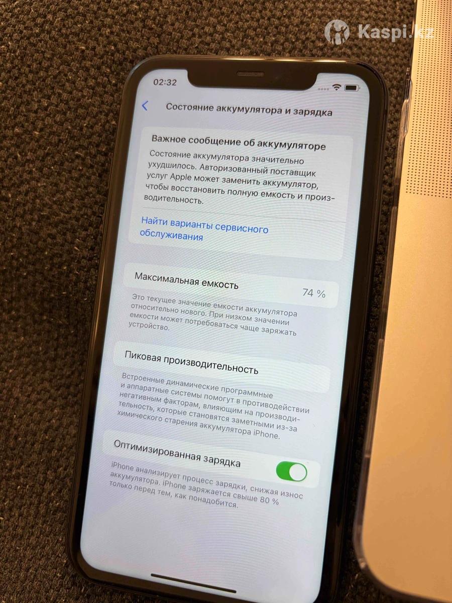 iPhone 11 в хорошем состоянии. Никакие запчасти не менялись, все оригинальное. Экран: Без царапин. Корпус: Без дефектов. Емкость памяти: 128 ГБ Состояние аккумулятора: 74% Комплект: телефон, коробка с инструкцией, чехол, провода USB-A to Lightning и USB-С to Lightning.