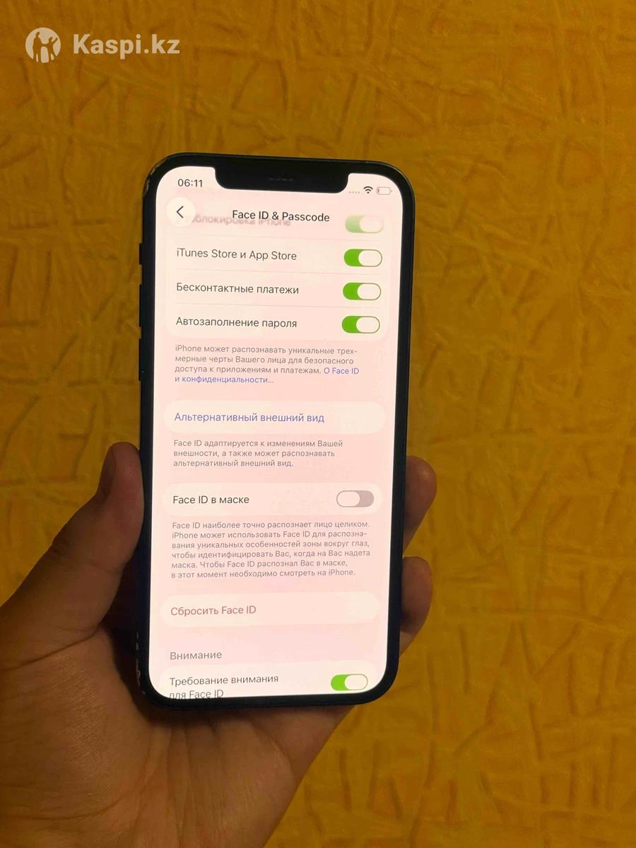 Айфон 12 128ГБ Емкость аккумулятора : 75% ( смело держит ) Есть небольшие коцики по корпусу. В ремонте никогда не был, не вскрывался. Все в оригинале. Любые проверки ! Все функции ( Face id , true tone, связь,динамика, камера и т.д. ) работают шикарно. Торг минимальный, в комплекте сам телефон и чехол. Перекупы не беспокойте.