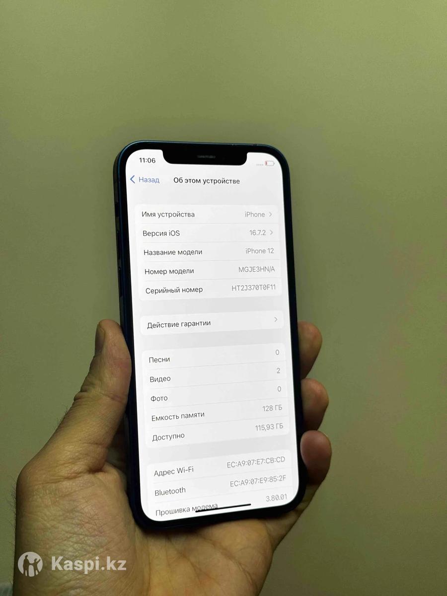 В продаже айфон 12 128гб. Емкость аккум 86%(шикарно держит) Состояние 10/10. Без вскрытия! 200% Любые проверки. Все функции работают(Face ID, True Tone,камера, связь, динамика) Цена адекватная Обмен есть(айфон) Адрес ориентировочно:Абая-Брусиловского. Приезжайте, смотрите. На связи 24/7 Есть рассрочка.(банк) +20%