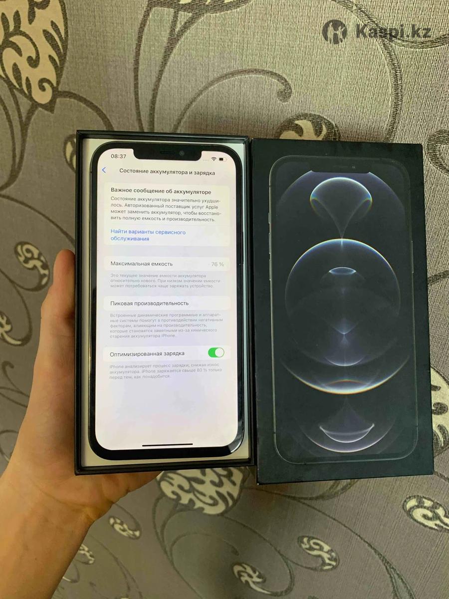 Продам IPhone 12 Pro Max в отличном состоянии. Память 128 ГБ, ёмкость аккумулятора 76%. Менялся дисплей, качество хорошее. Face ID и True Tone есть. Камера 1х немного мутная, но работает. В комплекте есть коробка.