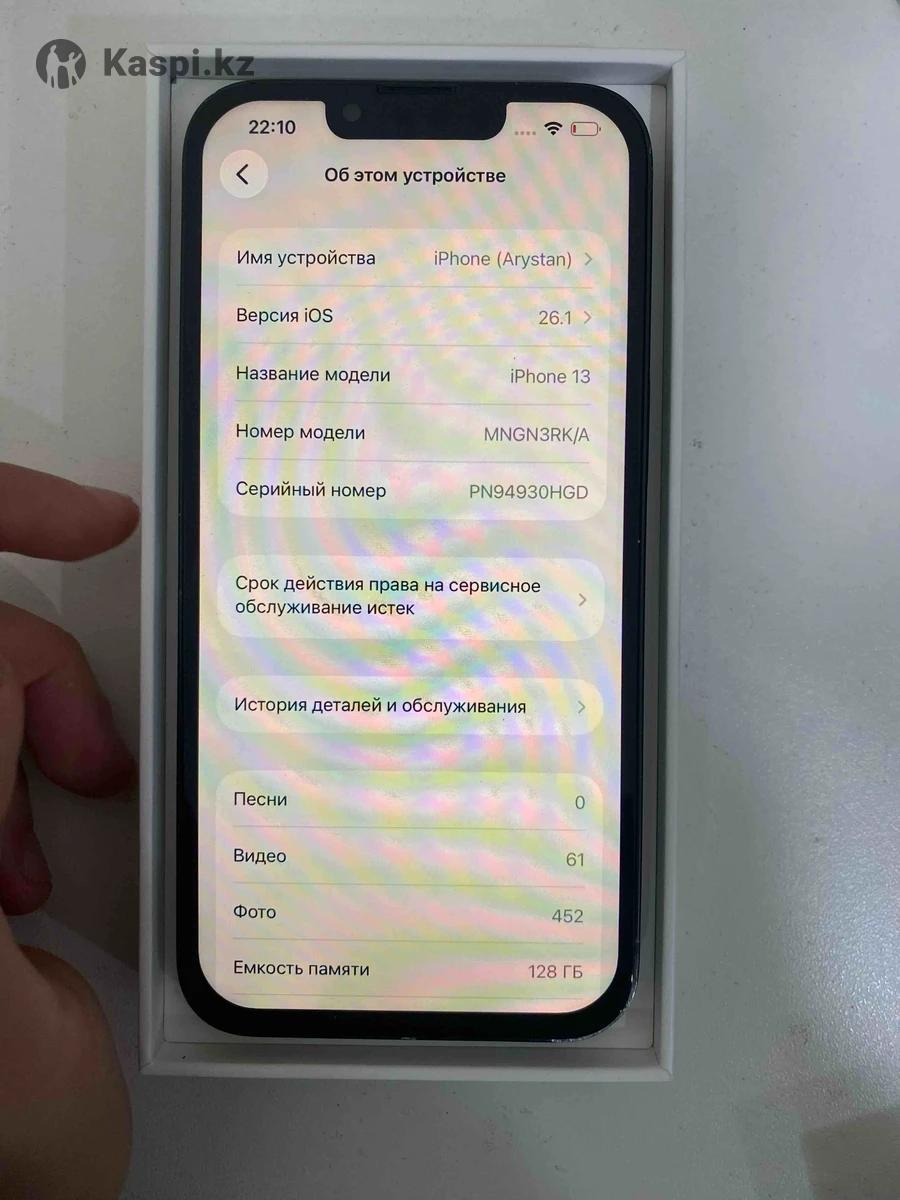 📱 iPhone 13 128GB 🔋 АКБ: 100% (ауыскан) 📲 iOS: 26.2 ✅ 📦 Қорап: бар 🛠 Тек АКБ и экран ауыскан ✅ 📸 Камерасы идеальный✅ 🎨 True Tone бар ✅ 🤳Face ID бар✅ 💰 Бағасы: 125 000 ₸ 🎁 : В подарок 1. Чехол 2. Защитное стекло 🔴 Состояние идеальный ❗ наличка Kaspi red,рассрочка - процент косылады ⏰ Бүгін алатындарға — срочно