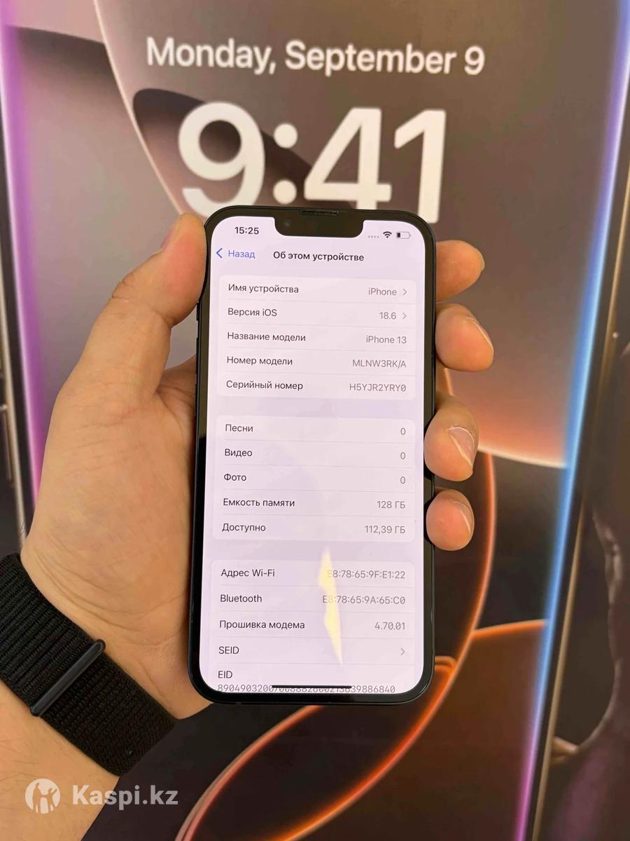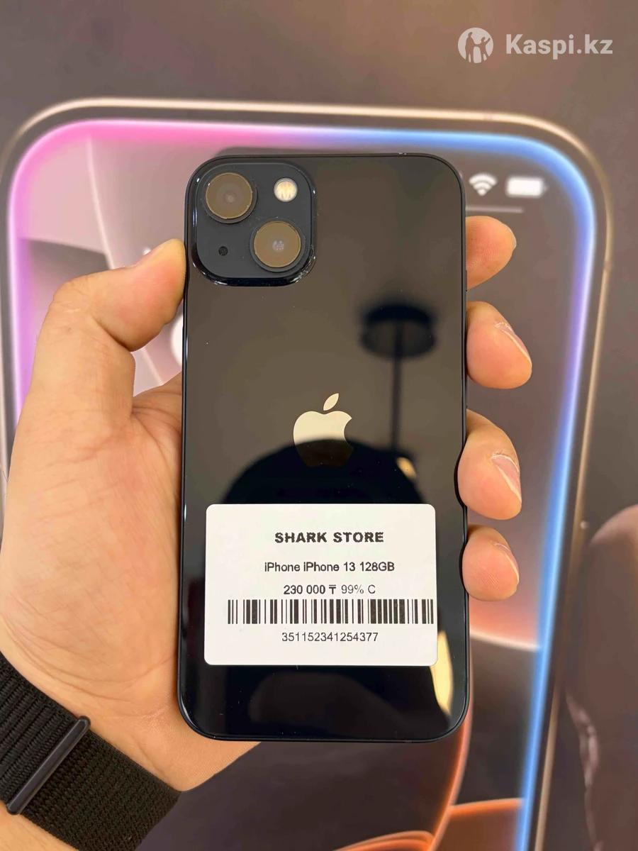 Вас приветствует магазин Shark Store Мы продаем всю технику от Apple по самым НИЗКИМ ЦЕНАМ по городу Шымкент Указанная цена в рассрочку📍📍📍 От нашего магазина мы даем 3 вида гарантии: 1. 45 дней на заводской брак на Б/У устройства 2. 1 год на сервисное обслуживание 3. Пожизненная юридическая гарантия на все устройства Есть программа Trade in! Мы находимся по адресу город Шымкент улица Байтурсынова 4 Будем всегда рады видеть вас у нас в магазине Shark Store Технические характеристики: • Модель: iPhone 13 • Память: 128 ГБ • Заряд батареи: 99% • Цвет: Black • Поставляется в коробке