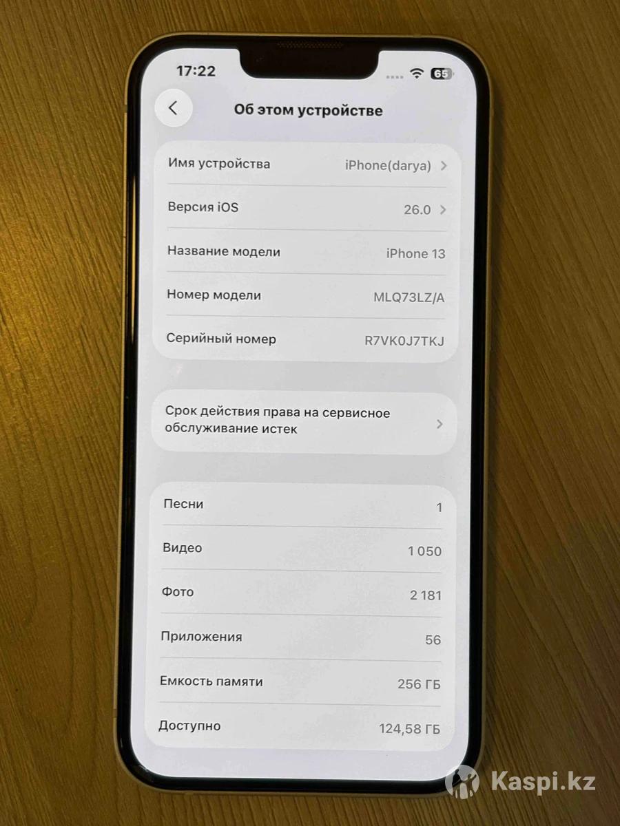 Продам iPhone 13, в отличном состоянии Держала девушка, в одних руках В ремонте не был, трещин и царапин нет, корпус в идеале Face ID, True Tone в идеале Айклауд чистый Полная комплектация, с коробкой, зарядкой и + 10 чехлов отдаю с телефоном Память: 256гб Акб: 87% IOS: 26.0 С момента покупки прошло чуть больше года, продаю по причине покупки нового телефона. Цена: 200.000тг Возможен торг, предлагайте свою цену.