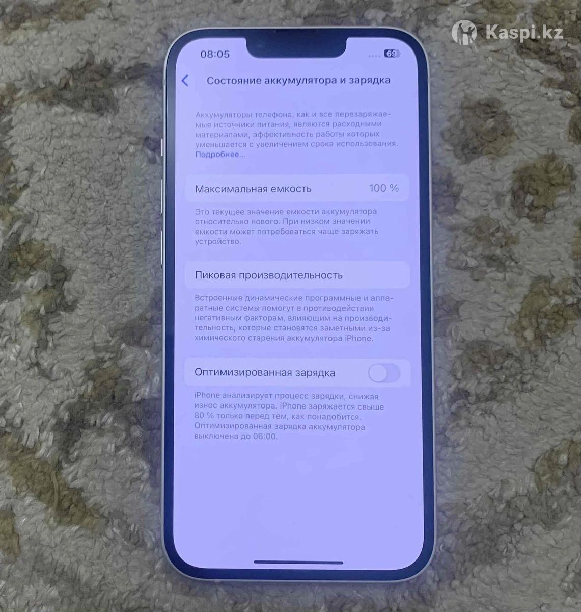 iPhone 13 Белый 128GB АКБ 100%(без ремонта, все родное) Физ сим + есим Верифицированный Комплектация отсутствует Состояние в идеале