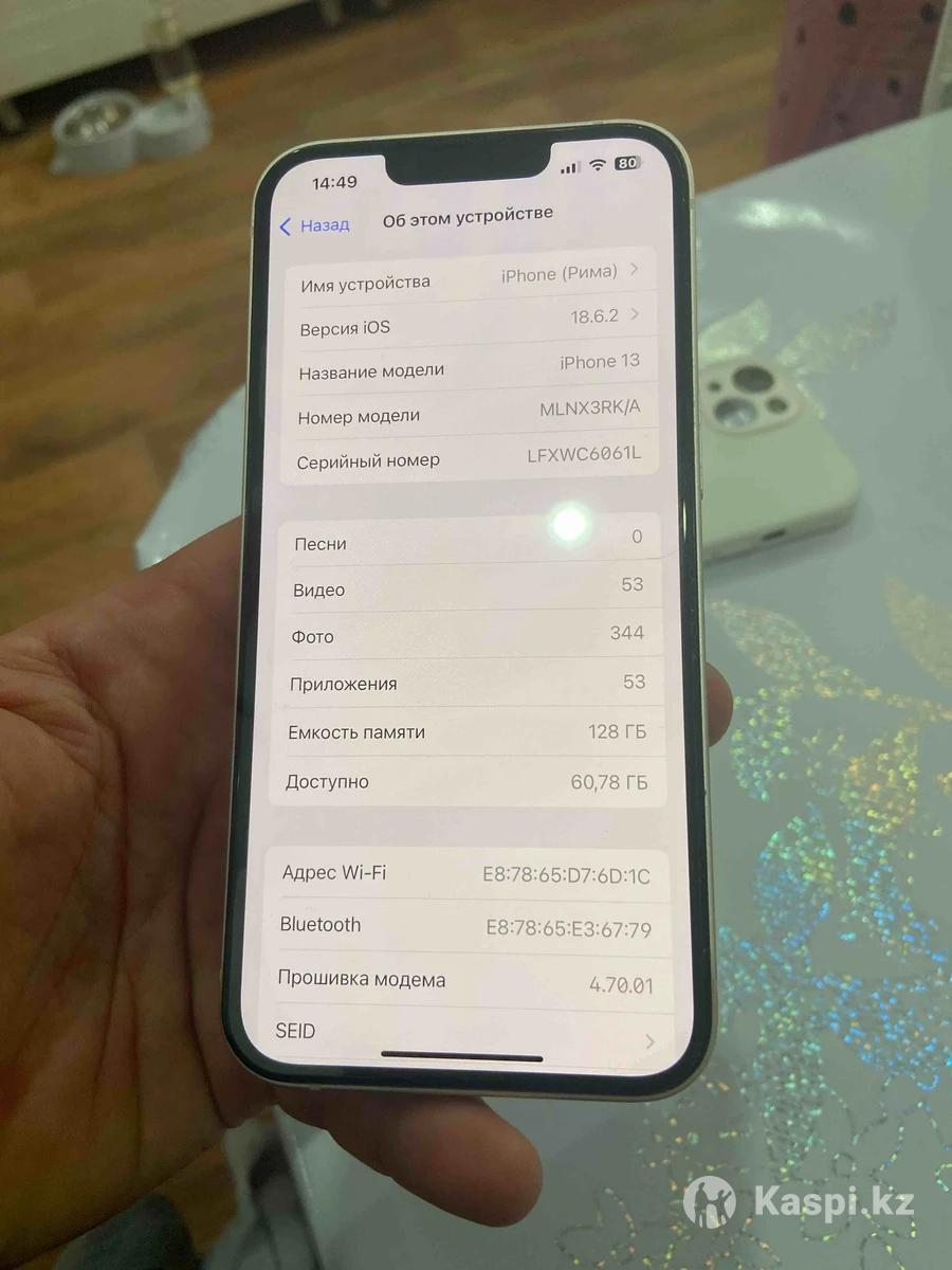 iPhone 13 128сост 10/9.9 емкость 88 срочно доки есть чехол и зарядки тоже можно в рассрочку через каспи 12 месяц