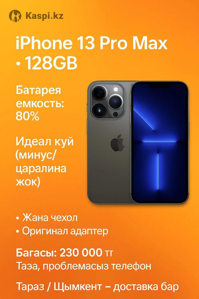 iPhone 13 Pro Max • 128GB Емкость 80% • Идеал күй Күтіммен ұсталған, царапина/минус жоқ. 20–80% аралығында зарядталып келген. Жаңа чехол + оригинал адаптер беріледі. Бағасы: 230 000 тг Таза, проблемасыз телефон! iPhone 13 Pro Max • 128GB Емкость 80% • Отличное состояние Телефон ухоженный, без царапин и минусов. Всегда заряжался 20–80%. В комплекте новый чехол и оригинальный адаптер. Цена: 230 000 тг Чистый, без проблем!