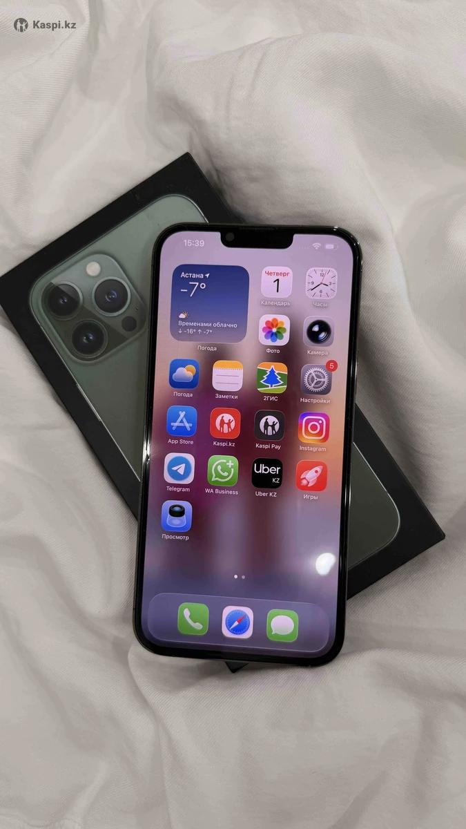 Продаю IPhone 13 Pro Max 256GB Цвет Alpine Green Память: 256 GB Аккумулятор: 78% Face ID, камера, динамика - все работает В ремонте не был Полный комплект: коробка, кабель, чехлы 💰Цена: 300 000 тг 📍Город: Астана 📲/звонки
