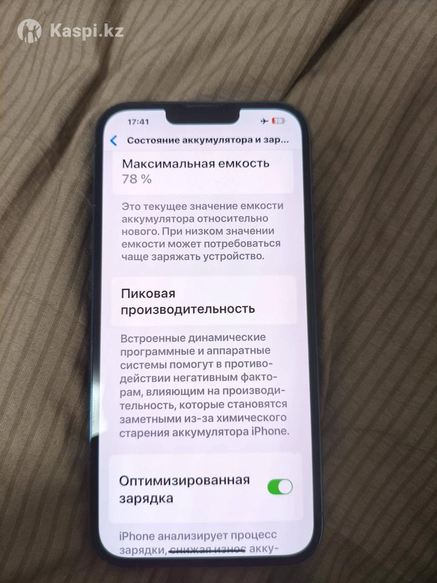 Продаю Айфон 13 Про Макс Емкость 78 процентов все функции по типу True Tone и Face ID работают нету никаких повреждений, сколов, вмятин, пользовались аккуратно. В ремонте не был. В комплекте три чехла, коробка и ориг кабель, зарядник есть но не оригинальный, могу дать по желанию.