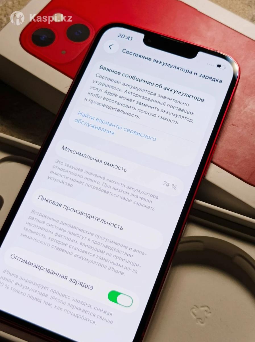 Продается iPhone 13, 128 GB, цвет красный Состояние как Новый Телефон в отличном состоянии, использовался аккуратно. Память — 128 GB. Ёмкость аккумулятора — 74%. Face ID работает идеально. True Tone работает. Все функции работают стабильно. В ремонте не был, Все детали заводские. iCloud чистый, готов к новому владельцу. Комплектация: Коробка, документы, оригинальный адаптер и кабель — все есть. Внешнее состояние очень хорошее, без царапин и трещин, никаких минусов нет. Цена договорная. Рассмотрю вариант обмена. Хороший вариант для тех, кто ищет надежный и аккуратный iPhone 13.