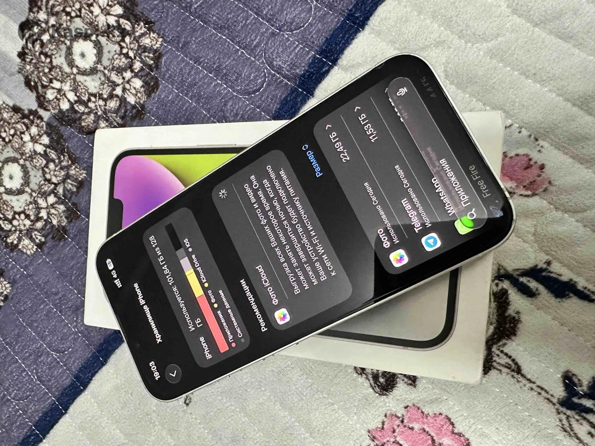 iPhone 14 Состояние: отличное, 79% , без царапин, без сколов. Все работает отлично Face ID, True Tone все работает. Пользовался сам, ничего не менял и сам телефон не скрывался. Писать только при реальной покупке