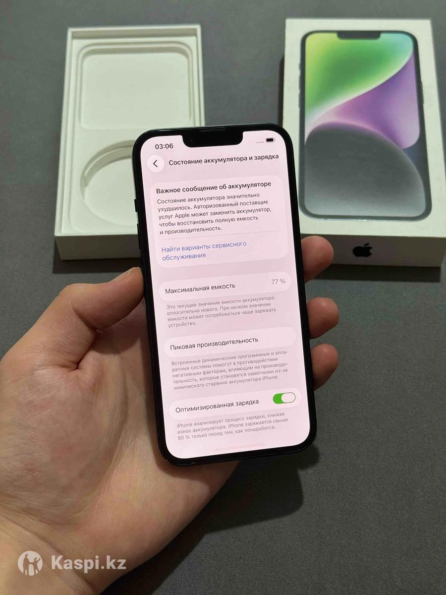 Продам Айфон 14 128гб АКБ 77% В хорошем состоянии все работает В ремонте не был не вскрывался В комплекте коробка документы шнур Dual sim 2 физически сим Цена 140.000тг