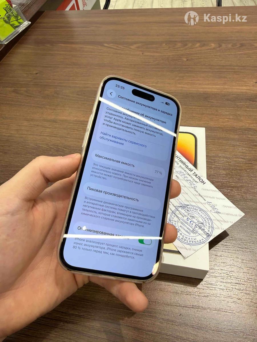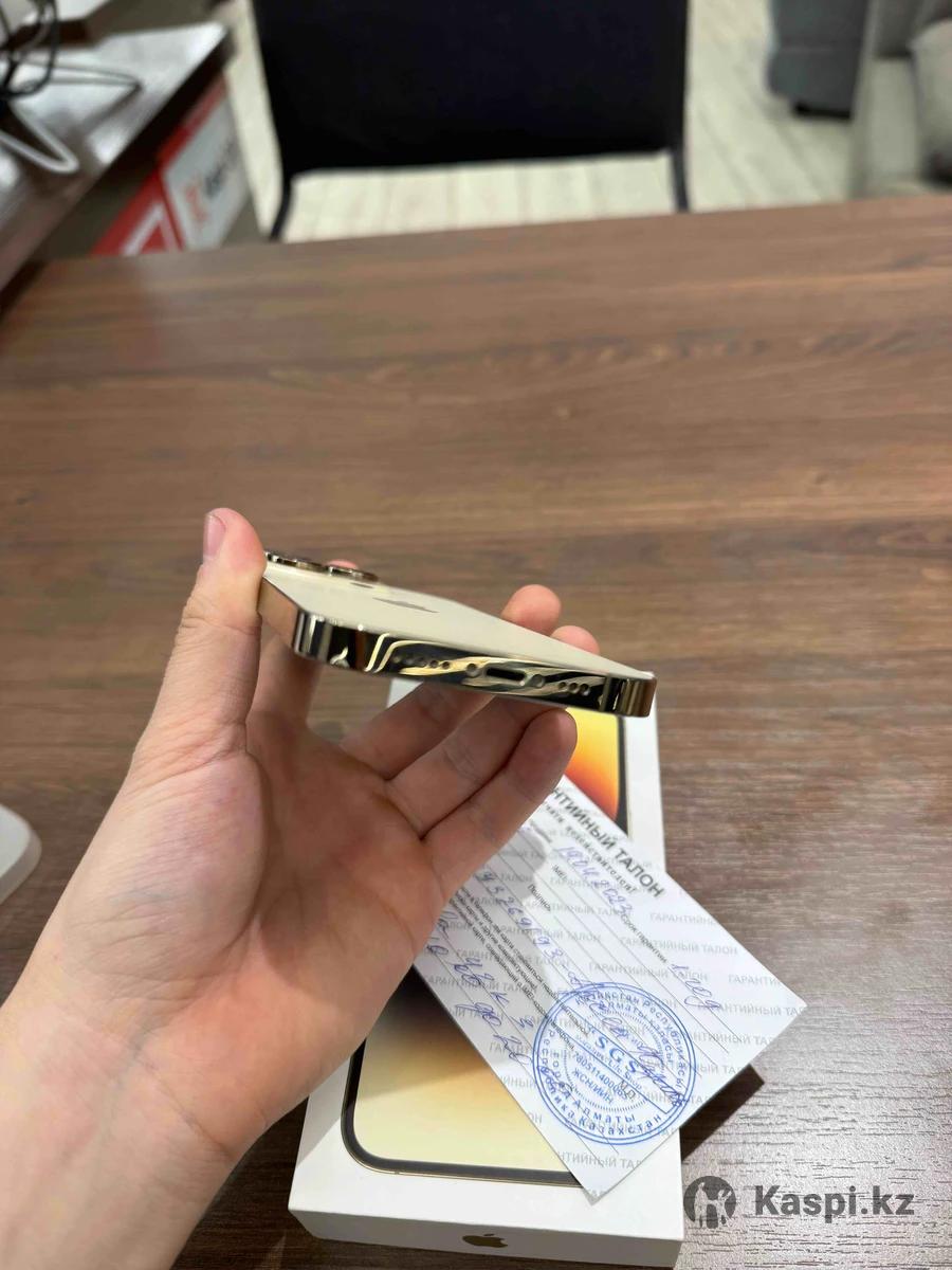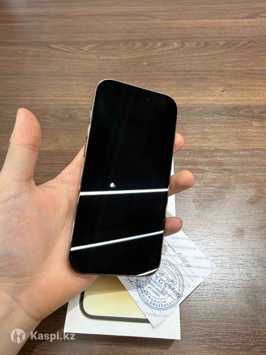 Iphone 14 pro 128gb Gold Один хозяин пользовалась жена.Даже гарантийный талон остался. Не вскрывался не ремонтировался не делался работает отлично. Face id,True ton работают идеально. Коробка зарядка оригинал чехол состояние как на фото,телефон живой мало пользовались.Акб 77% на весь день хватает.