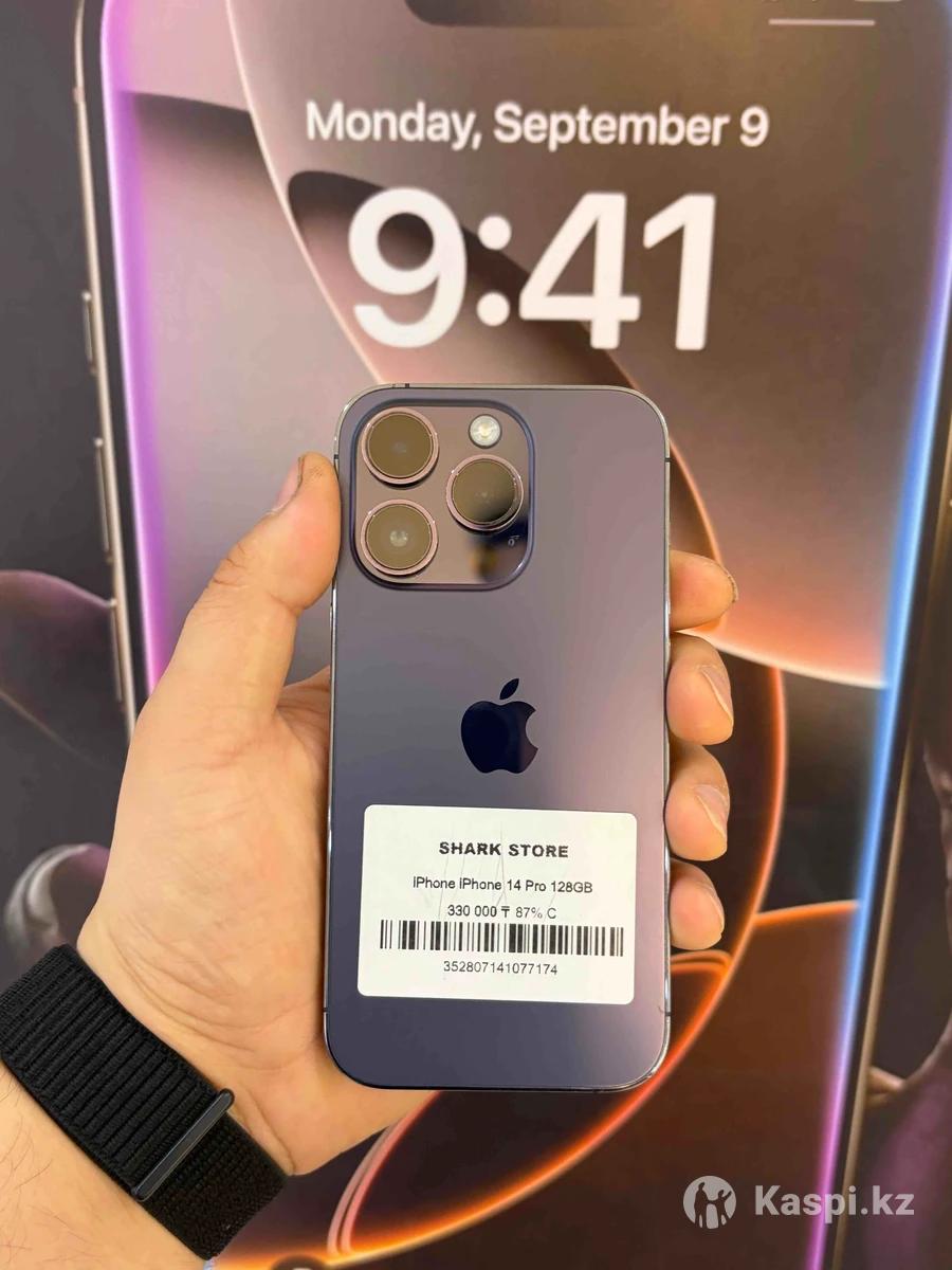 Вас приветствует магазин Shark Store Мы продаем всю технику от Apple по самым НИЗКИМ ЦЕНАМ по городу Шымкент Указанная цена в рассрочку📍📍📍 От нашего магазина мы даем 3 вида гарантии: 1. 45 дней на заводской брак на Б/У устройства 2. 1 год на сервисное обслуживание 3. Пожизненная юридическая гарантия на все устройства Есть программа Trade in! Мы находимся по адресу город Шымкент улица Байтурсынова 4 Будем всегда рады видеть вас у нас в магазине Shark Store Технические характеристики: • Модель: iPhone 14 Pro • Память: 128 ГБ • Заряд батареи: 87% • Цвет: Purple • Поставляется в коробке