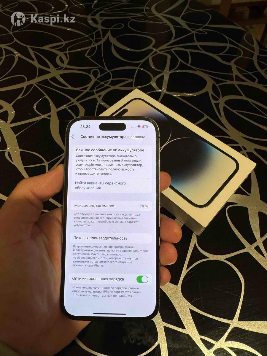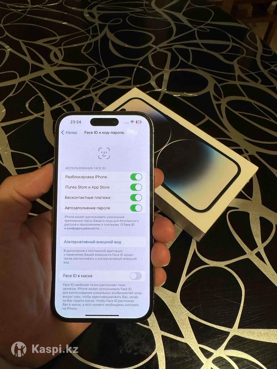 Айфон 14 про 256гб РЕМОНТ КӨМЕГЕН Тру тон ✅ Фейс айди ✅ Коробка док ✅ Ёмкость 74% ✅ Царапины есть Экране Задний Крышка ♻️
