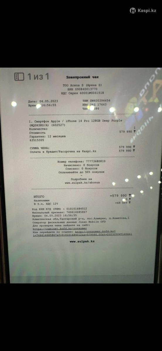 Продам айфон 14 про, 128гб, емкость 80, в ремонте не был, не вскрывался, фейс,тру тон работает, с момента покупки 1 хозяин, чек имеется, коробка имеется