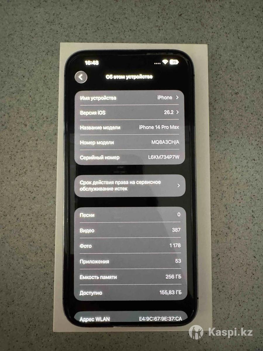 iPhone 14 Pro Max 256 GB Цвет: Фиолетовый Память: 256 ГБ iOS: написано там Face ID — работает Камеры, звук, связь — без проблем iCloud чистый, не заблокирован Состояние: отличное. Работает быстро, Face ID отличный. Батарея держит бодро Причина продажи: подарили новый телефон
