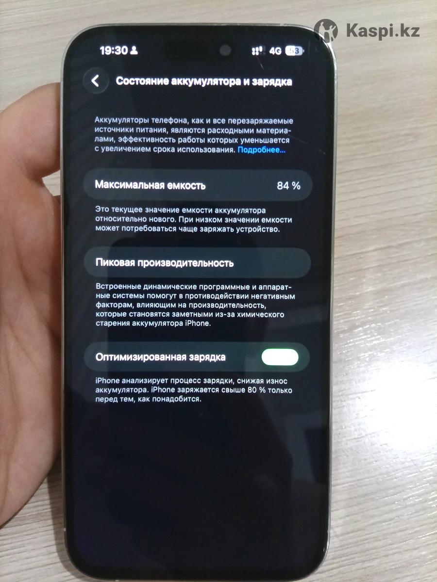 IPhone 14 pro max white 128 gb Аккумулятор 84% iOS 26.2 FaceID Truetone есть Экран заменен на задней крышке есть трещина на Документы все есть