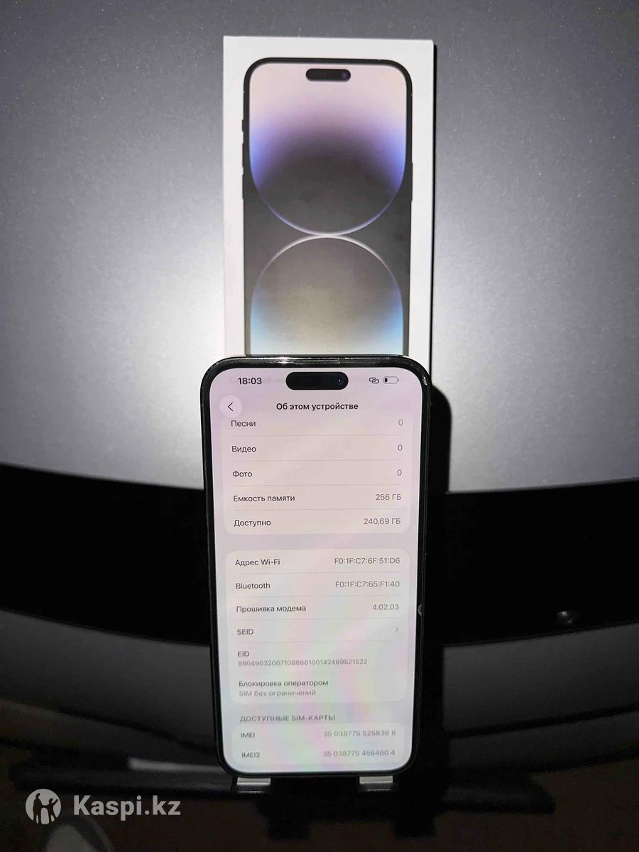 ПЕРЕКУПЫ! Читайте описание! Не надо мне звонить и задавать вопросы, ответы на которые есть в описании. Продам IPhone 14 Pro Max Коробка имеется. Шнура нет. Цвет: черный Память: 256 Gb АКБ: 83% eSIM версия Телефон не вскрывался. В ремонте не был. Телефон не верифицированный. Состояние по корпусу: 8/10 (телефон не новый, должны понимать) Цена: 310.000 тенге (торг уместен)
