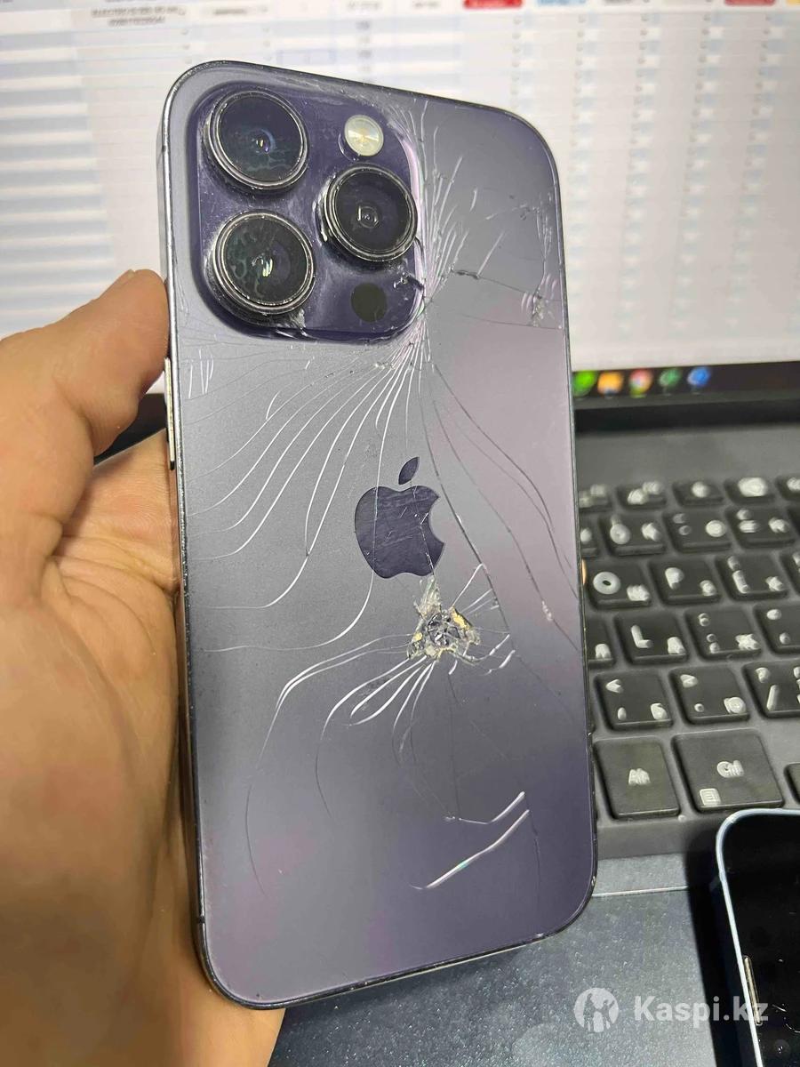 Айфон 14 про в среднем состоянии. Все функции работают. Разбита задняя крышка, по экрану и корпусу царапины/потертости. Цена соответствует состоянию. В настройках ошибка камеры т.к нет 0,5 (появилась после обновления)
