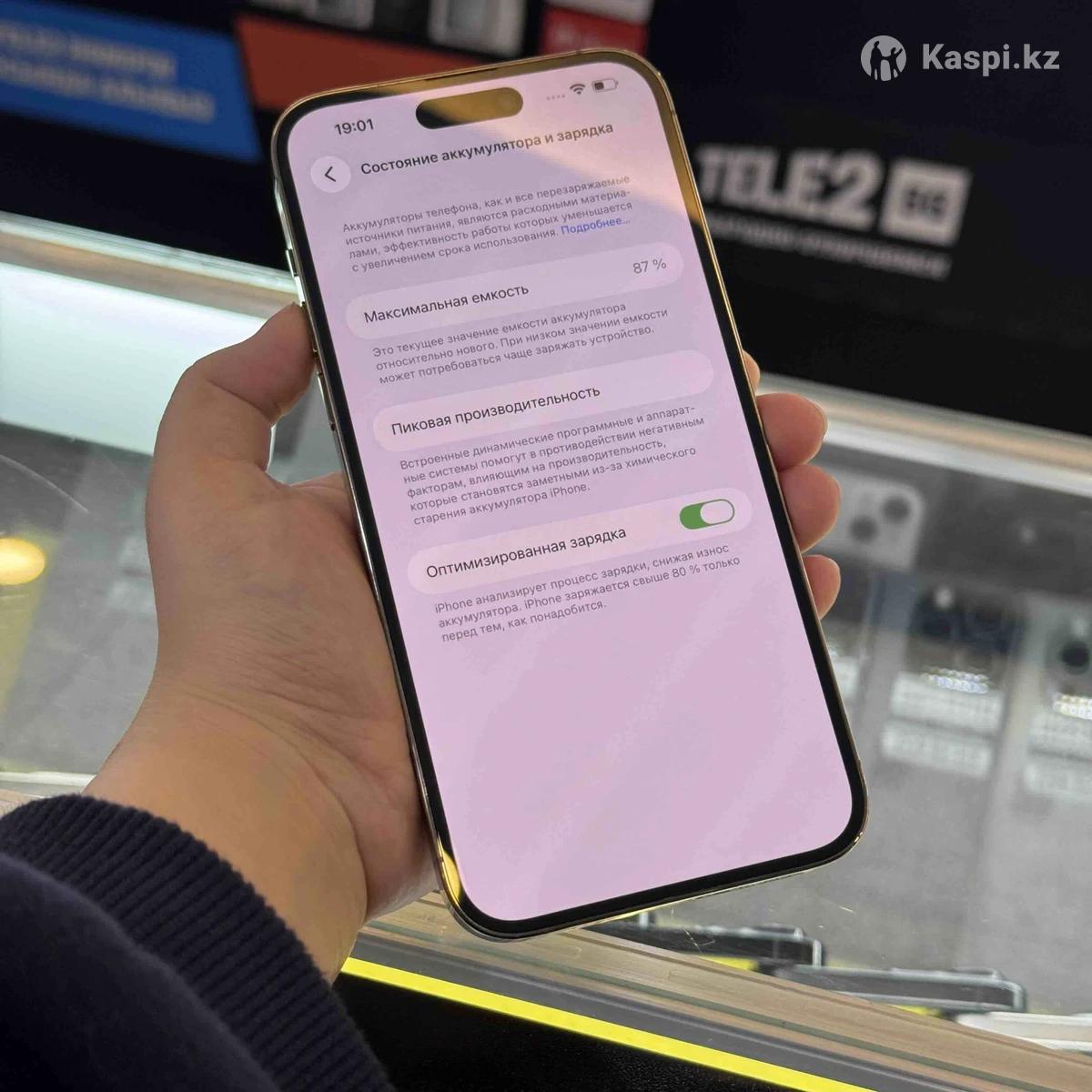 iPhone 14 Про Макс Комплектация: оригинал шнур,стекло и чехол Состояние: идеальное Аккумулятор: 87% Память: 512Гб Цвет:золотистый Цена: 310.000тг OT IPhone 7 до IPhone 17Pro Max 1 tb Гарантия на проверку Все цены указаны за наличный расчет, в рассрочку/ кредит цены другие (в зависимости от банка и срока). Kaspi Red на 3 месяцев до 500.000тг Kaspi рассрочка 3/6/12/24 месяцев Kaspi кредит до 24 месяцев Home bank 3/6/12/24 месяцев Home кредит до 24 месяцев Halyk bank рассрочка 3/6/12/24 месяцев кредит до 48 месяцев Trade-in - обмен Доставка по РК В наличие есть много других моделей от арре, подробнее на инстаграм: мы реализуем оригинальную технику, которая ранее была в использовании. Б/у и запечатанные телефоны, ноутбуки, наушники итд, есть функция trade-in.