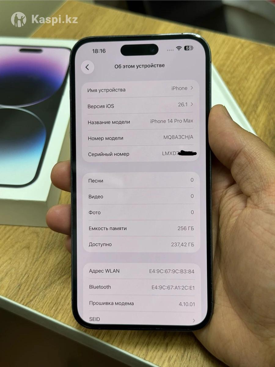 iPhone 14pro max 5G 256gb ch/a dual sim deep purple🔋86% в отличном сост.без ремонта и минуса, полный комплект! 285.000🔥✍🏽📞