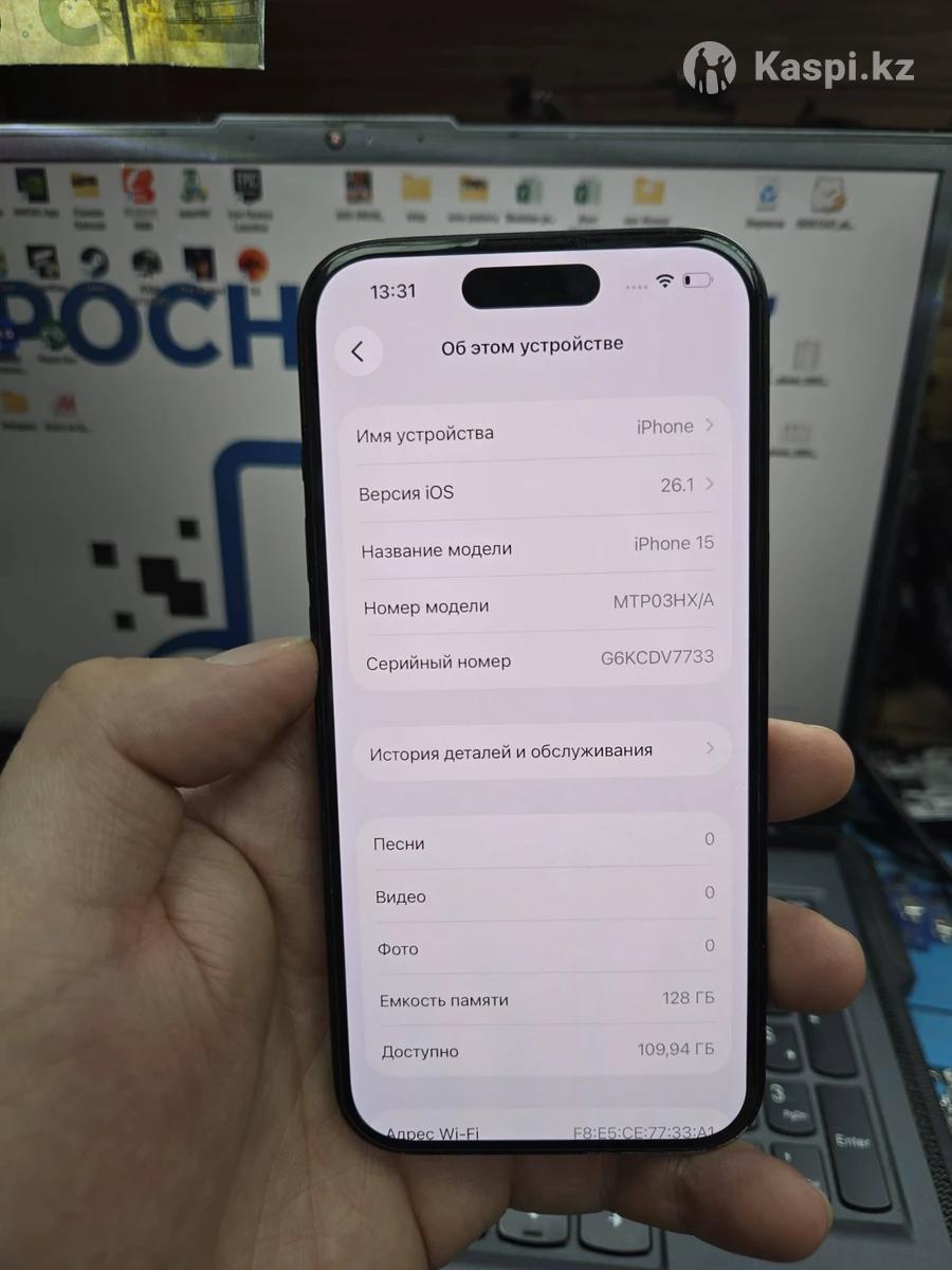 📱 iPhone 15 — 128GB 🔋 Аккумулятор — 84% 🔐 Face ID — работает отлично 📸 Заменена основная камера на оригинал, снятый с другого телефона (не китайский аналог) 📲 Память — 128 ГБ 📦 Есть коробка и документы 🧾 iCloud чистый, работает без ограничений 💎 Состояние корпуса — среднее, есть потертости и следы эксплуатации, но телефон полностью исправен и готов к использованию. ⚙️ Все проверено, функционирует без проблем.