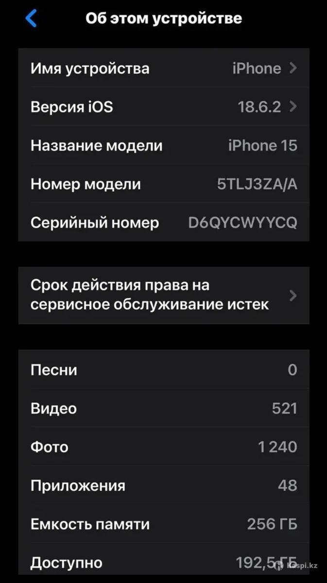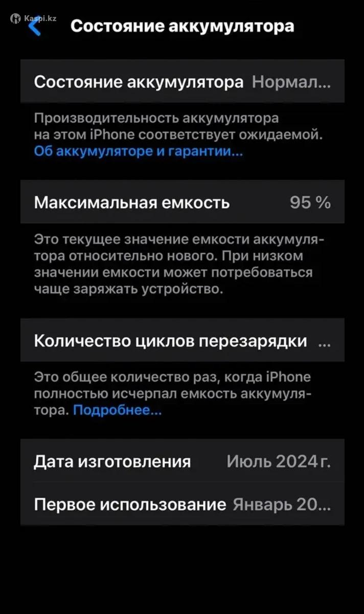 Модель: Apple iPhone 15 Память: 256 ГБ Состояние аккумулятора: 95% от максимальной емкости. Это отличный показатель, близкий к новому устройству, который обеспечивает пиковую производительность и долгую автономную работу. Внешнее состояние: Идеальное Дисплей: Яркий 6,1-дюймовый дисплей Super Retina XDR с функцией Dynamic Island. Процессор: Мощный чип Apple A16 Bionic для плавной работы приложений и игр. Камера: Продвинутая система двух камер с основной камерой 48 Мп и сверхширокоугольной камерой 12 Мп, обеспечивающая высококачественные и детализированные снимки. Причина продажи:Нужны деньги для оплаты кредита