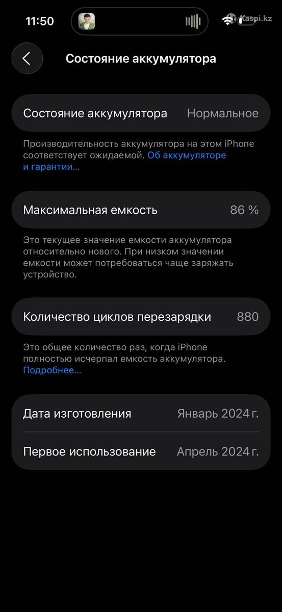 iPhone 15 Pro в отличном состоянии. Память - 128 ГБ. Ёмкость - 86%. Face ID,True Tone все работает. Цена окончательная!