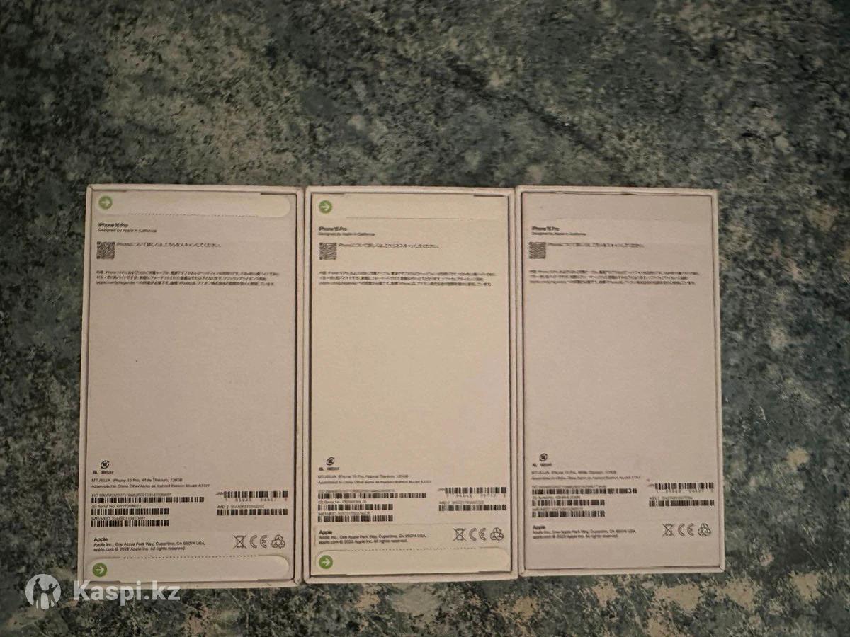 Продаются 3 новых iPhone 15 Pro. В наличии цвета: 2 шт. — White Titanium, 1 шт. — Natural Titanium. Все телефоны абсолютно новые, не вскрывались, не активировались, в заводской запечатанной упаковке. Оригинальная продукция, полный комплект. Отличный вариант для личного пользования или на подарок. Сатылады 3 дана iPhone 15 Pro. Түстері: 2 дана — White Titanium, 1 дана — Natural Titanium. Барлық телефондар мүлде жаңа, ашылмаған, қосылмаған (активация жасалмаған), зауыттық қаптамада. Түпнұсқа өнім, толық комплект. Өзіңізге немесе сыйлыққа өте қолайлы.