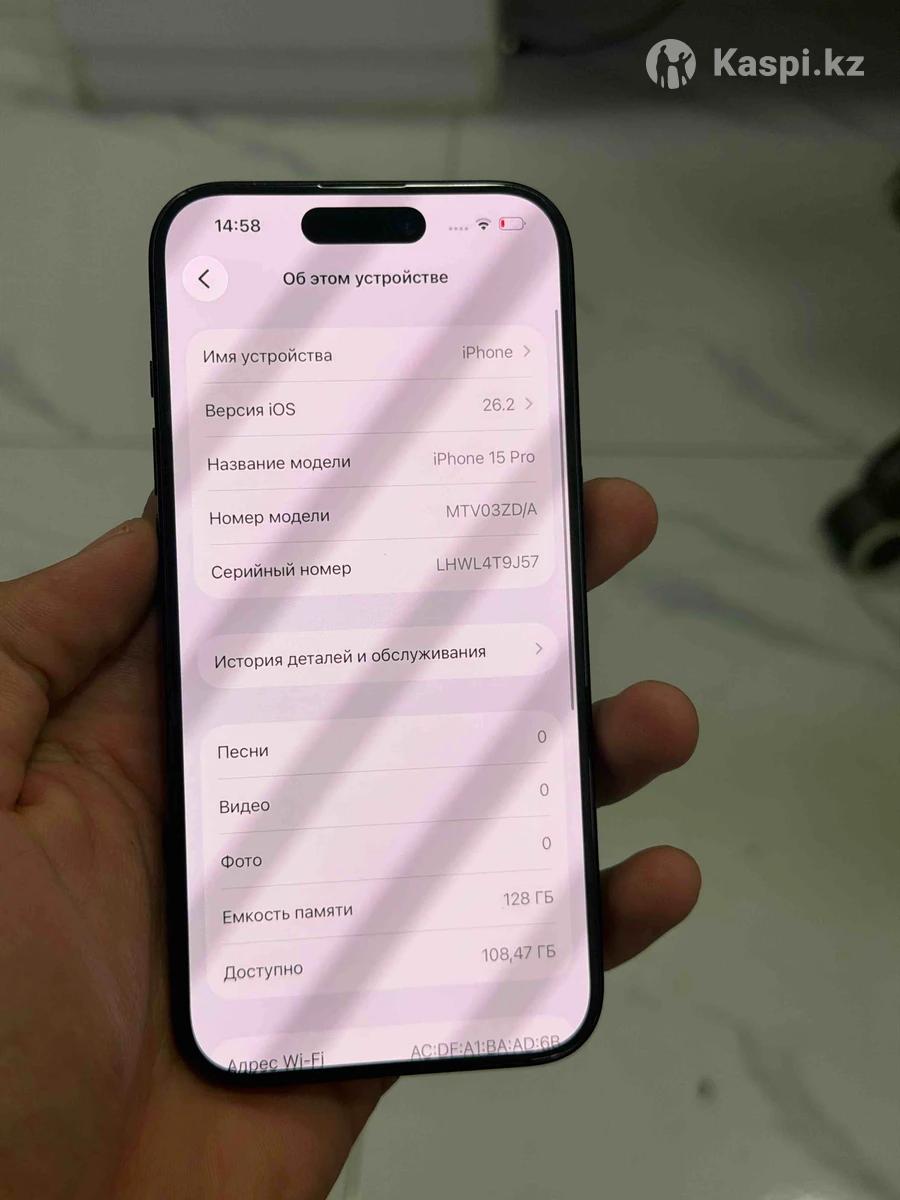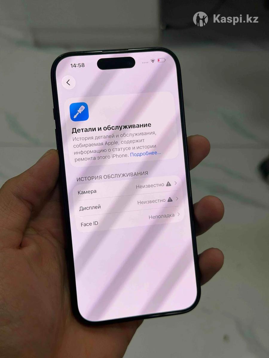 iPhone 15 pro 128 GB акб 88 Коробка бар Камера 0.5 жасамайды Экран ауыскан оригинал 100% Фейс жасамайды 220.000 тг