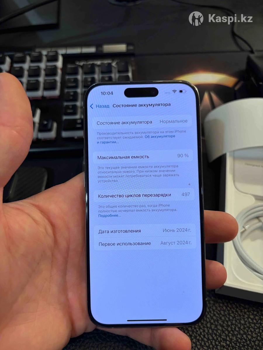 Продам iPhone 15 pro 512 гигабайт память батарейка 90% цена 350000 тг